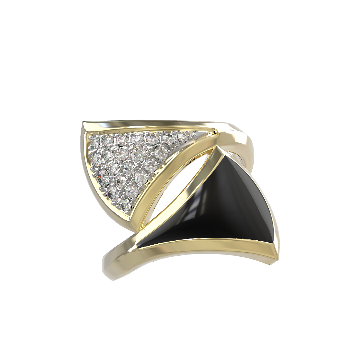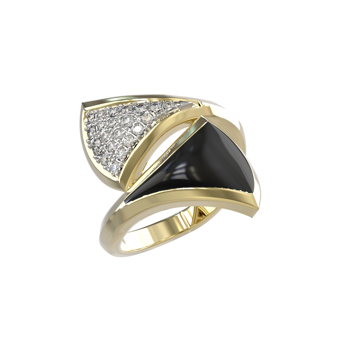 Кольцо из лимонного золота c бриллиантами и ониксом