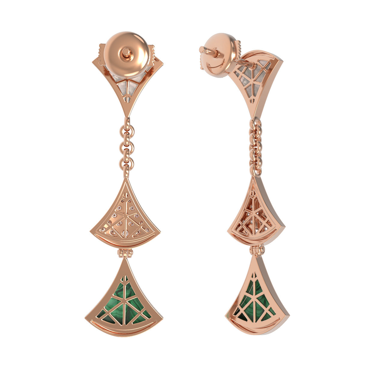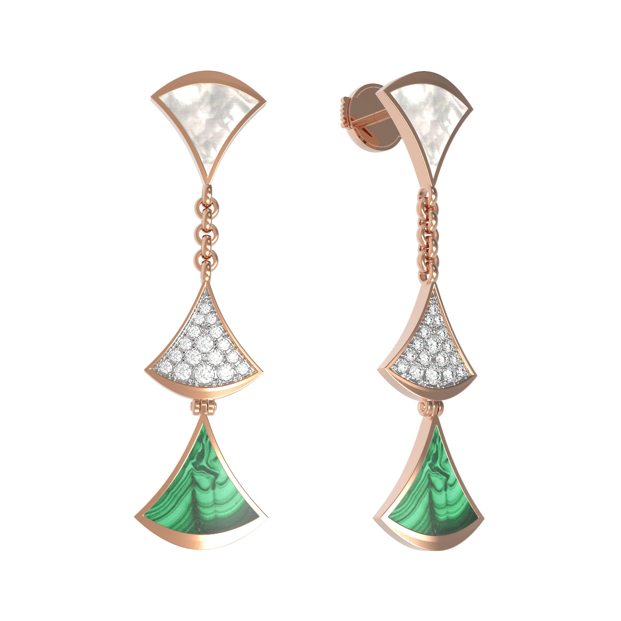 Серьги из золота c бриллиантами, малахитом и перламутром