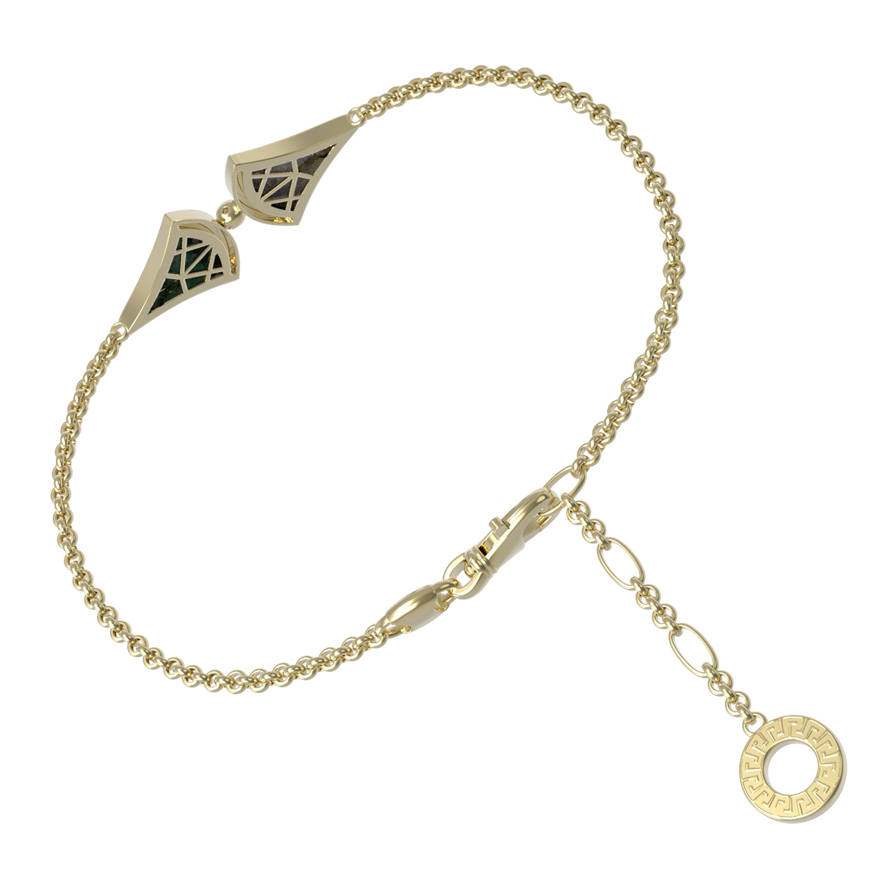Браслет из лимонного золота c малахитом и перламутром