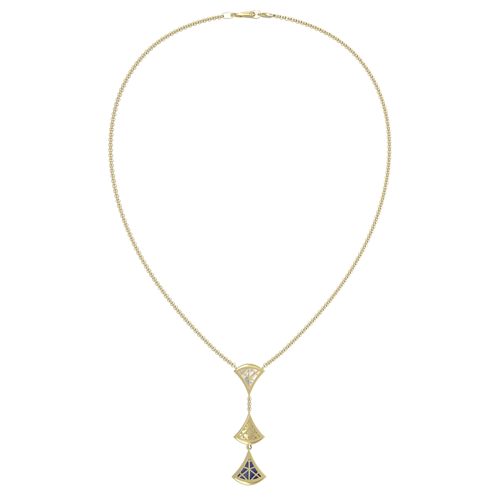 Колье из лимонного золота c бриллиантами, лазуритом и перламутром