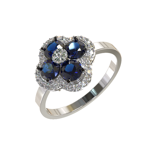Кольцо из белого золота c бриллиантами и сапфиром