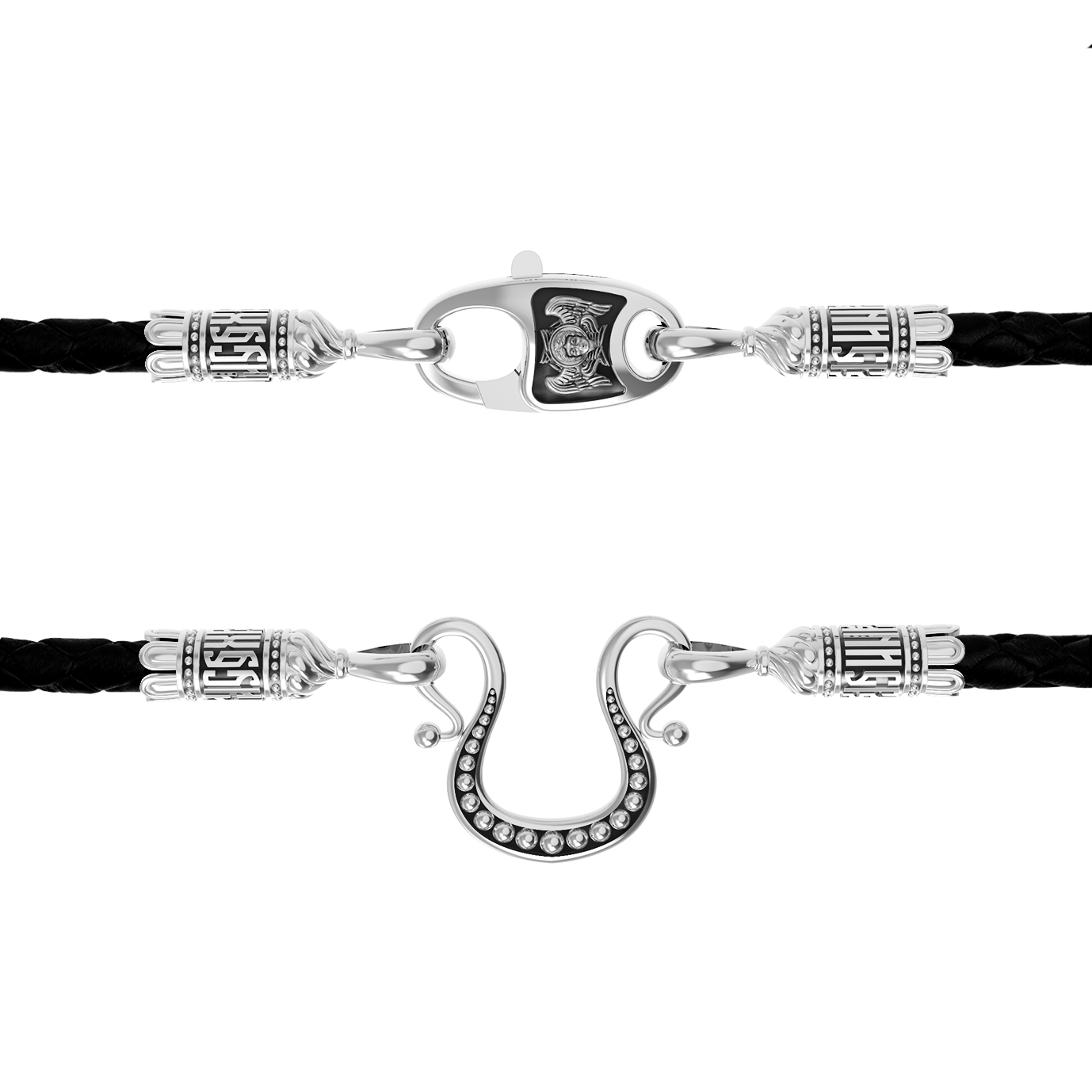 Гайтан из белого золота c кожаным шнурком