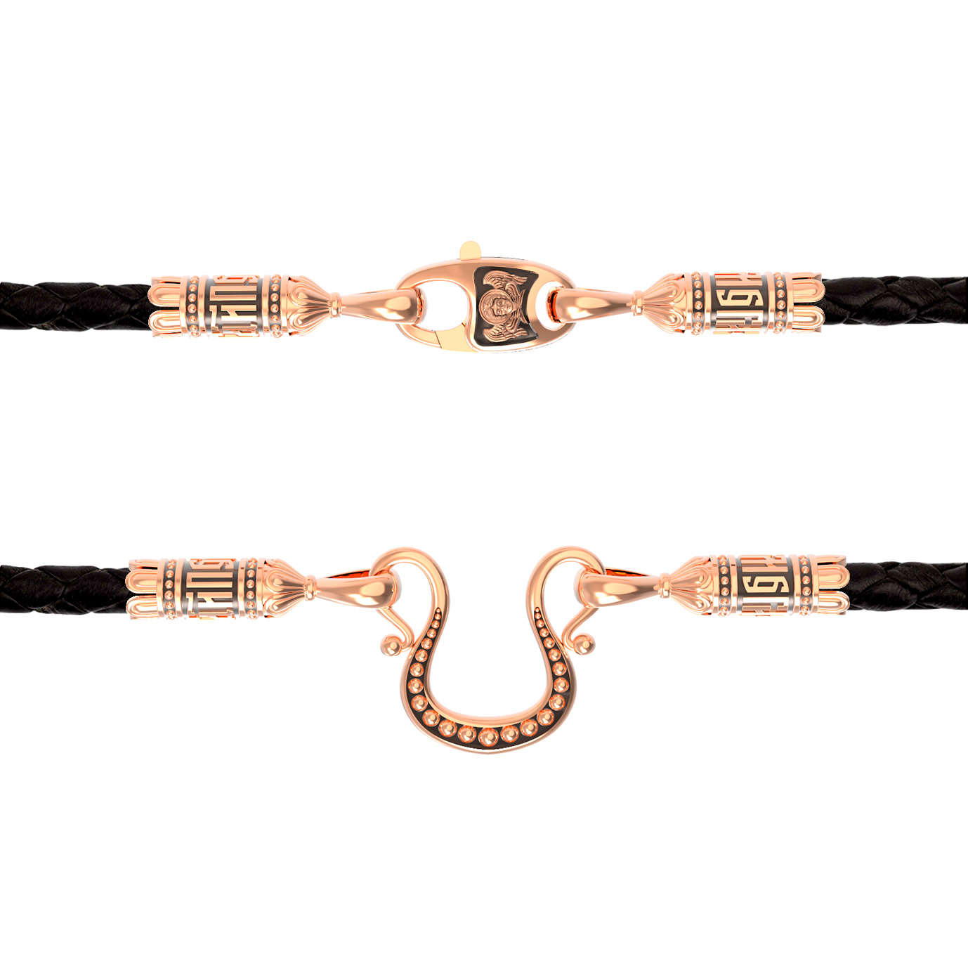 Гайтан из золота c кожаным шнурком