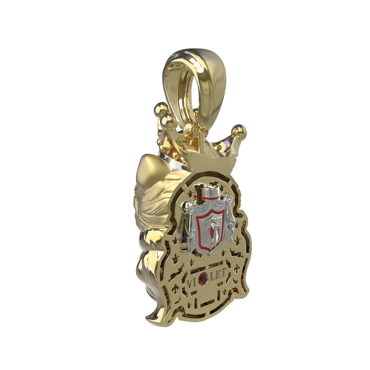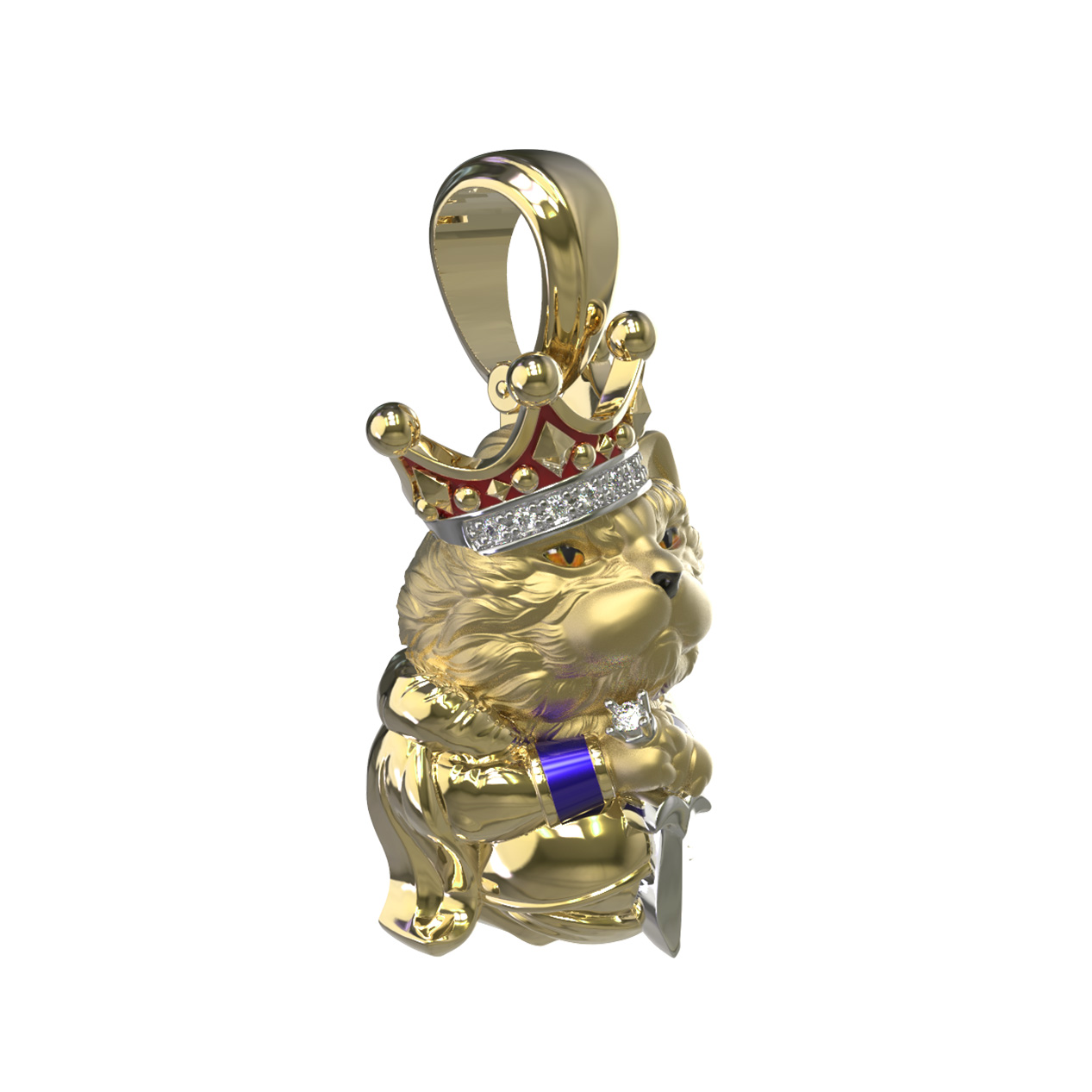 Подвеска из лимонного золота c эмалью, бриллиантами и рубином
