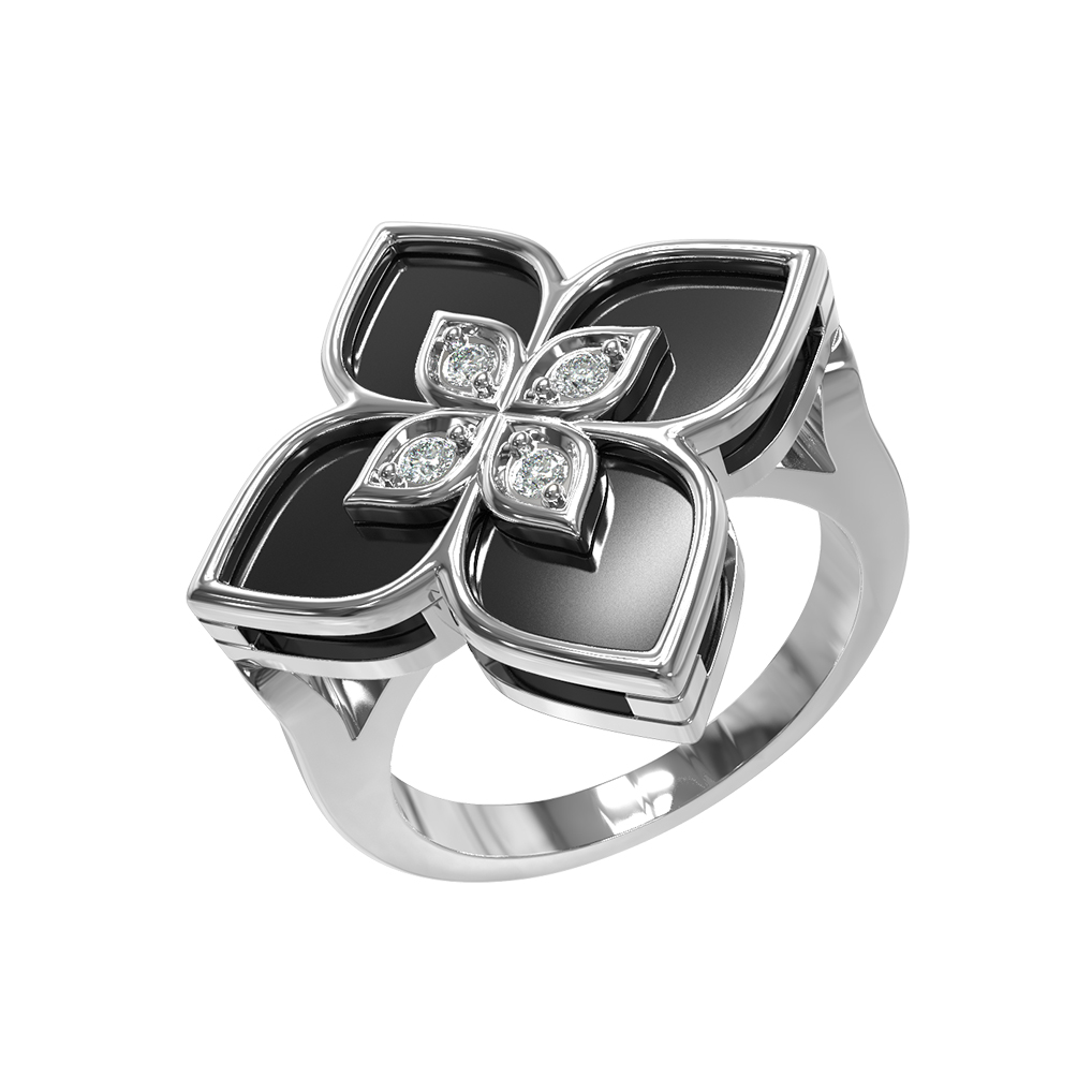 Кольцо из белого золота c бриллиантами и ониксом