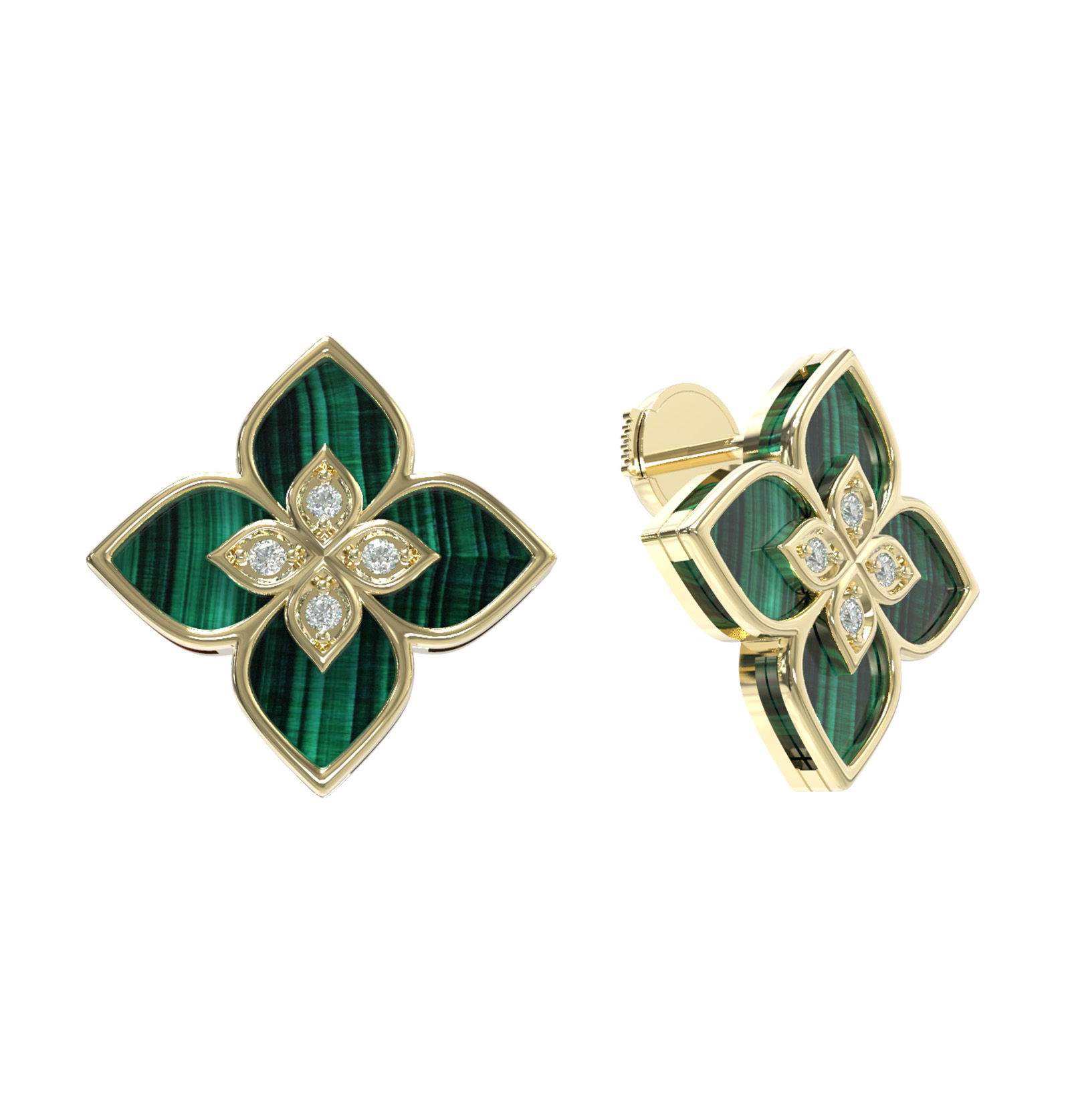 Серьги из лимонного золота c бриллиантами и малахитом