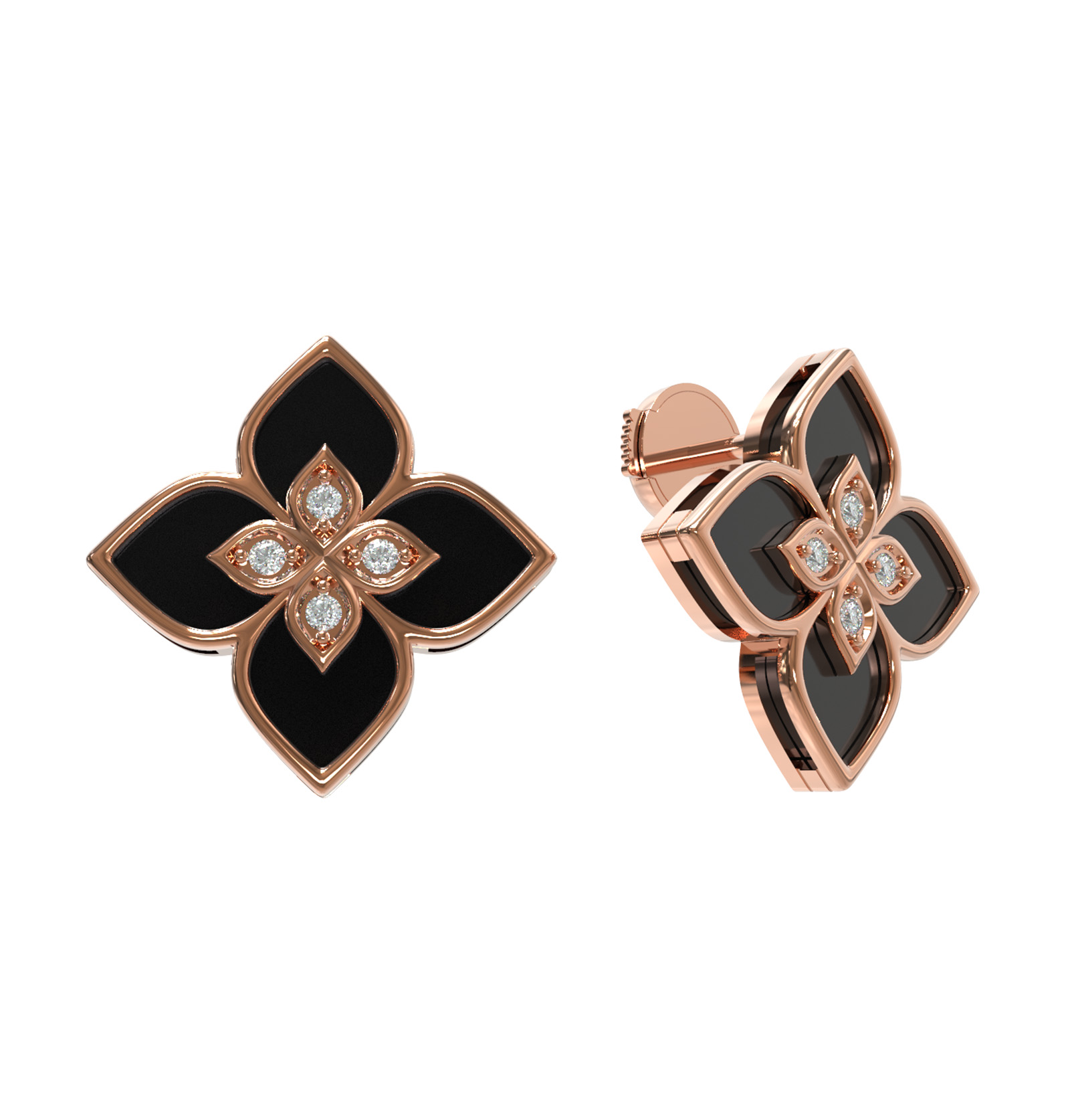 Серьги из золота c бриллиантами и ониксом