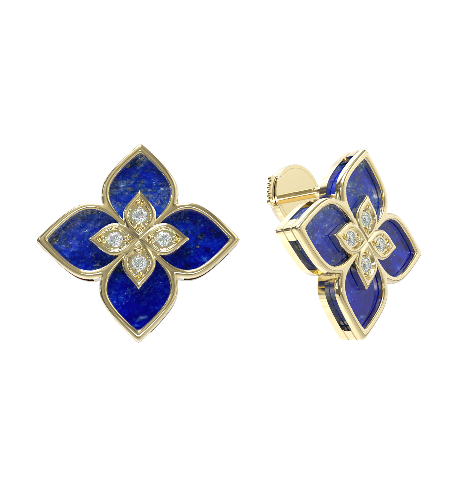 Серьги из лимонного золота c бриллиантами и лазуритом