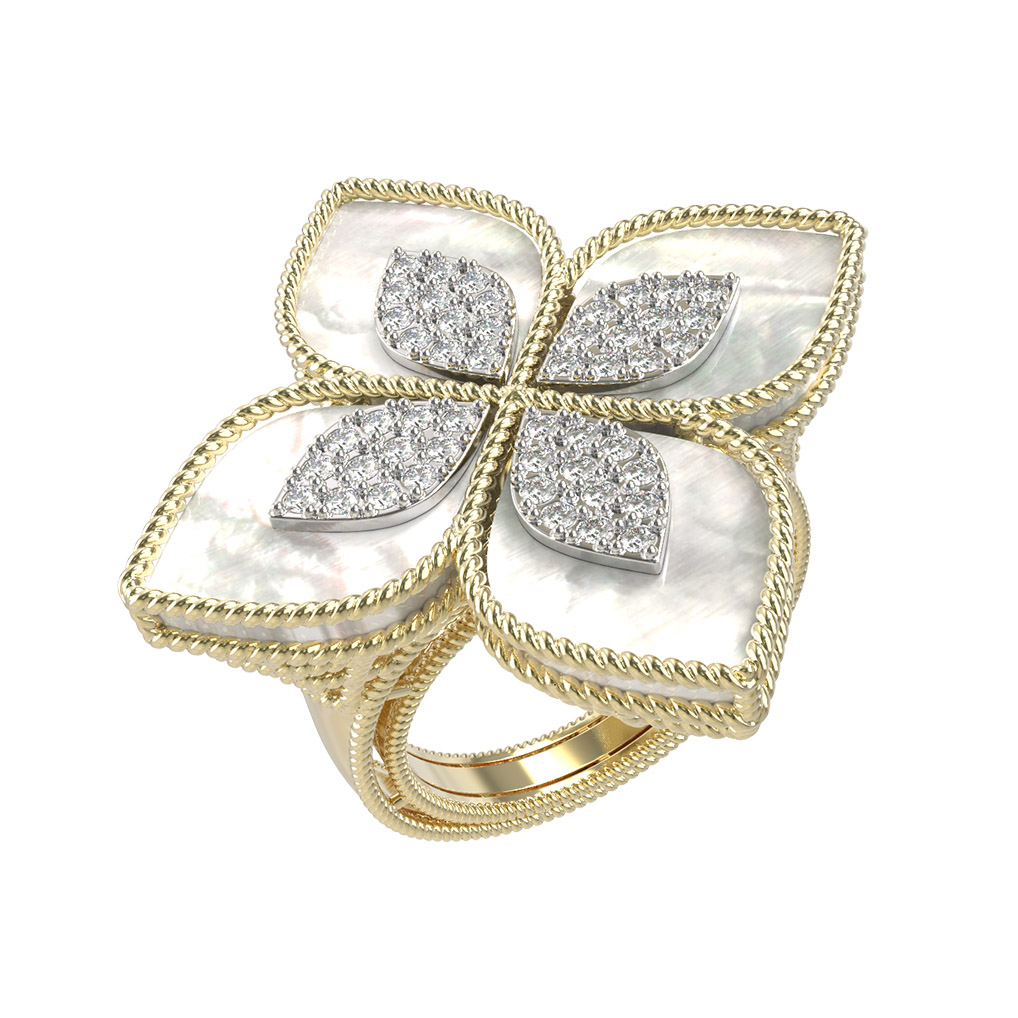 Кольцо из лимонного золота c бриллиантами и перламутром