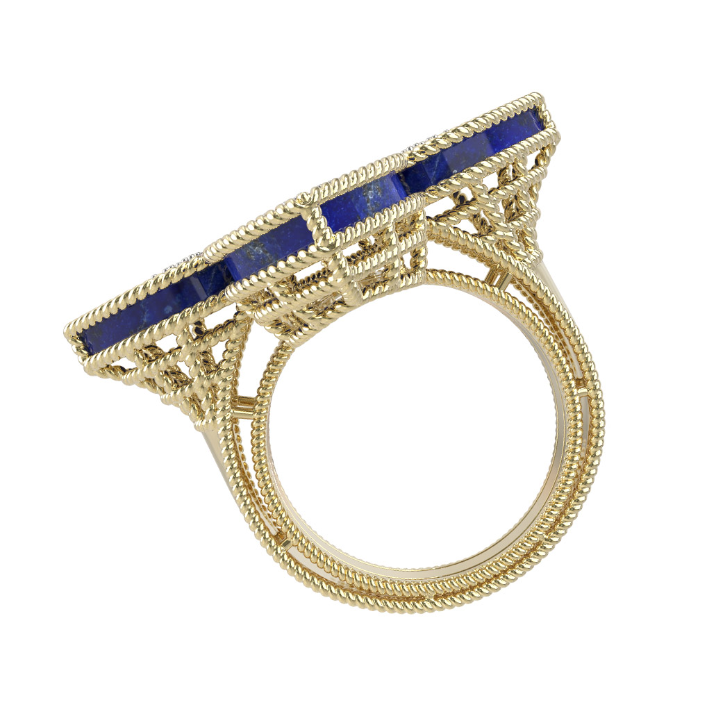 Кольцо из лимонного золота c бриллиантами и лазуритом