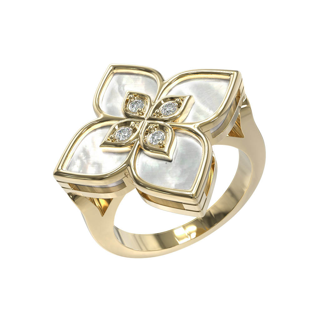 Кольцо из лимонного золота c бриллиантами и перламутром