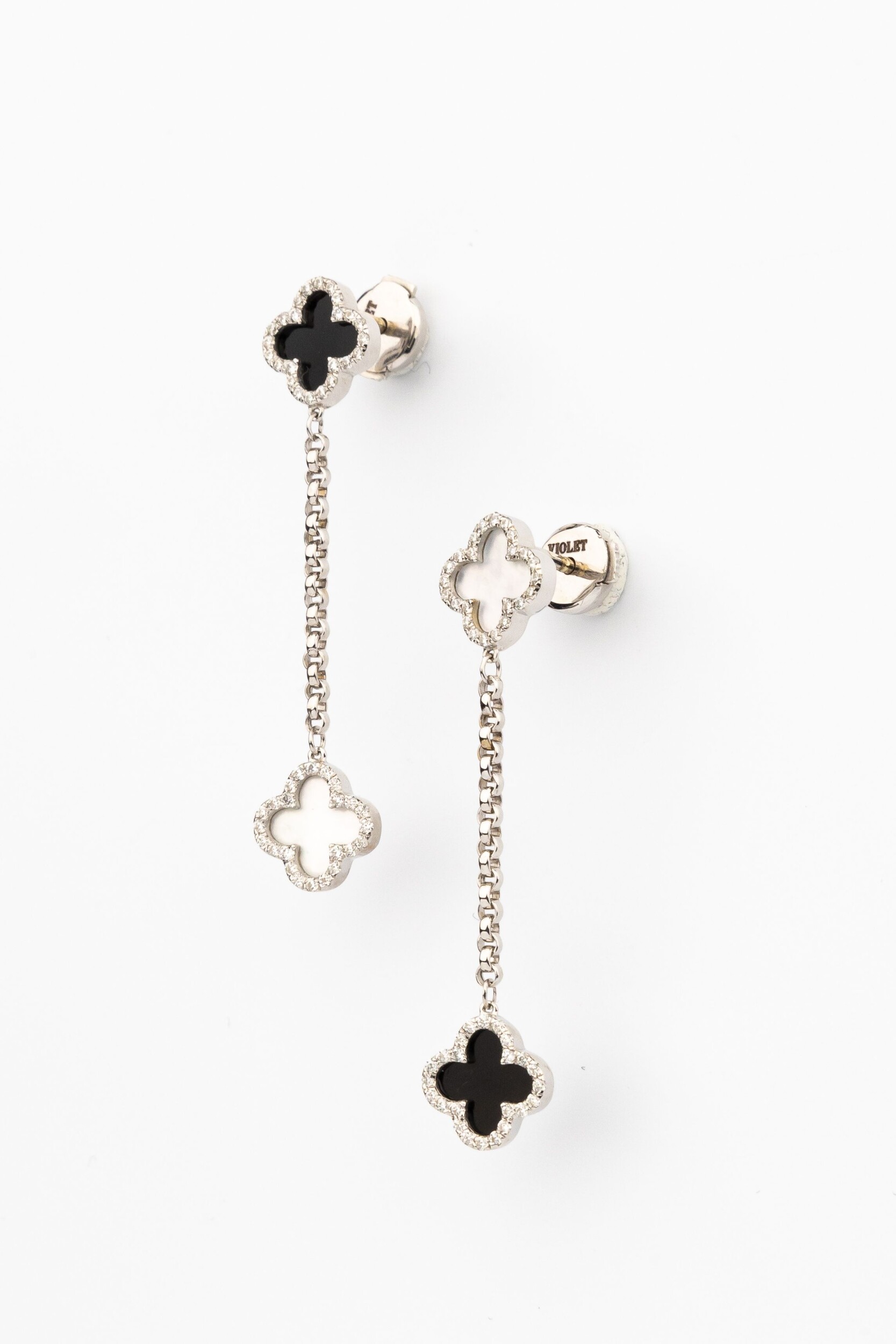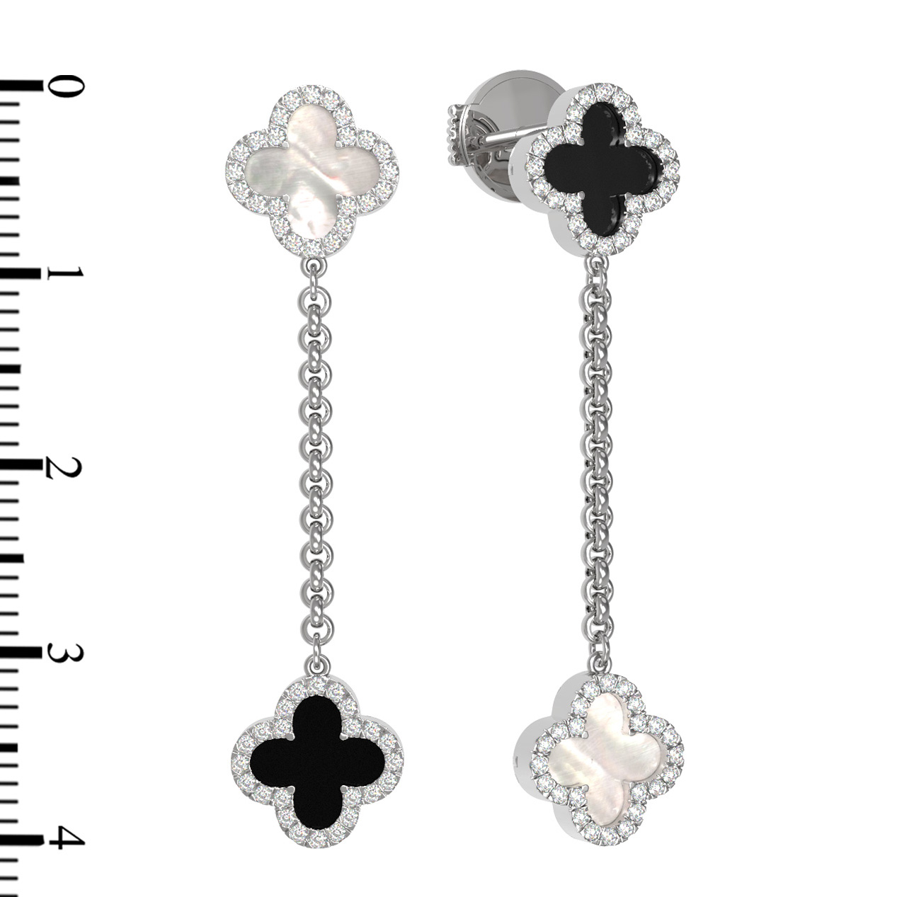 Серьги из белого золота c бриллиантами, ониксом и перламутром