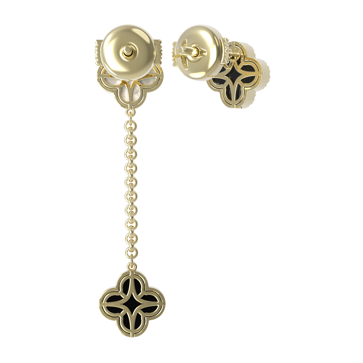 Серьги из лимонного золота c бриллиантами, ониксом и перламутром
