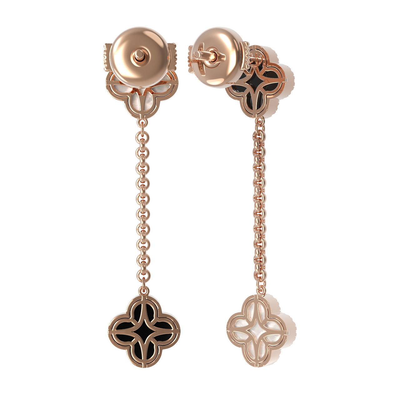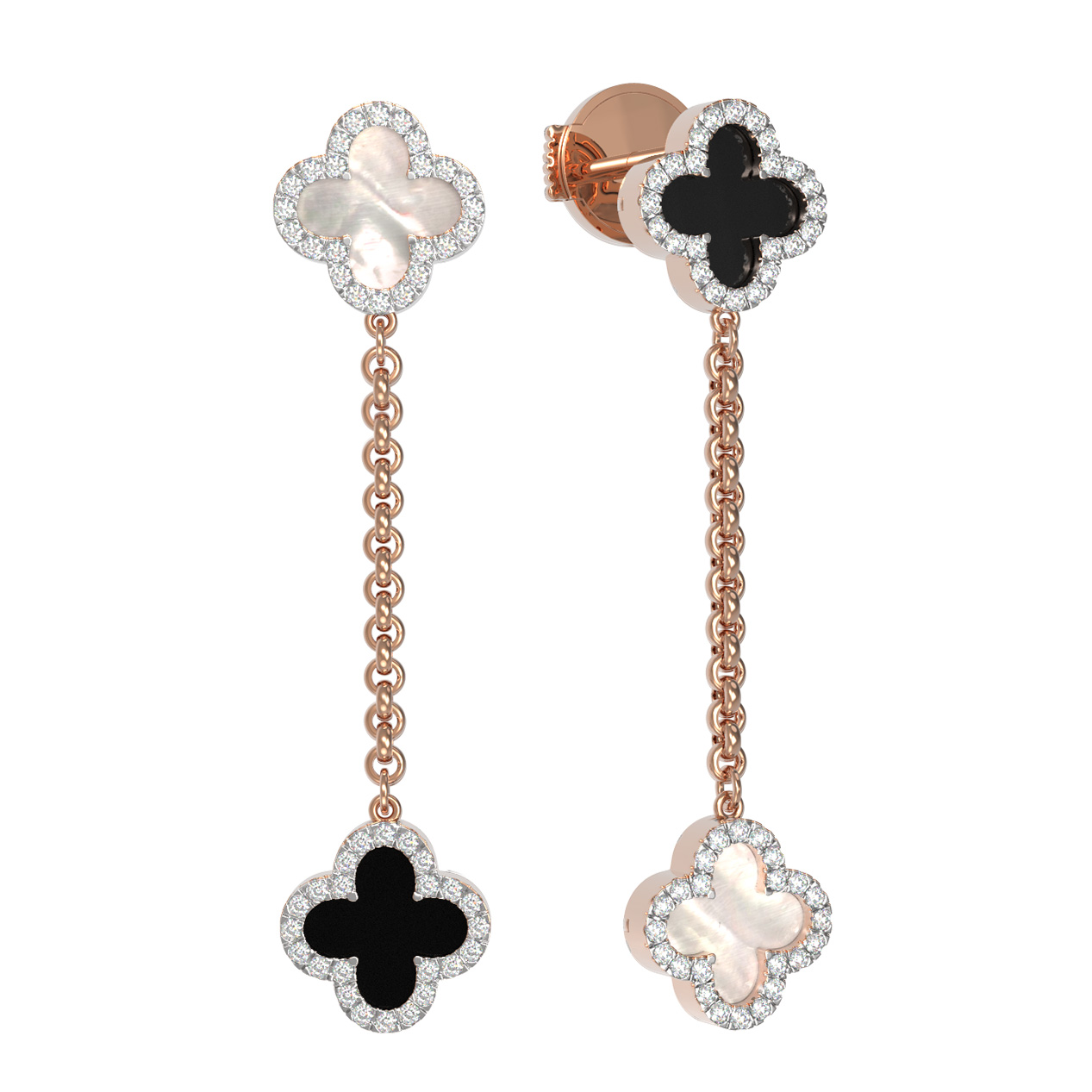 Серьги из золота c бриллиантами, ониксом и перламутром