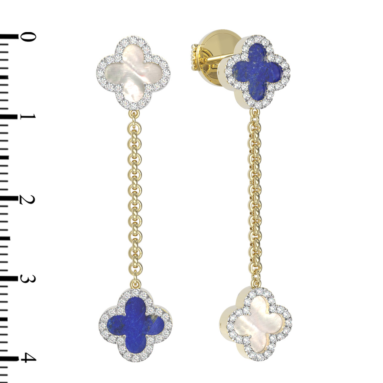 Серьги из лимонного золота c бриллиантами, лазуритом и перламутром
