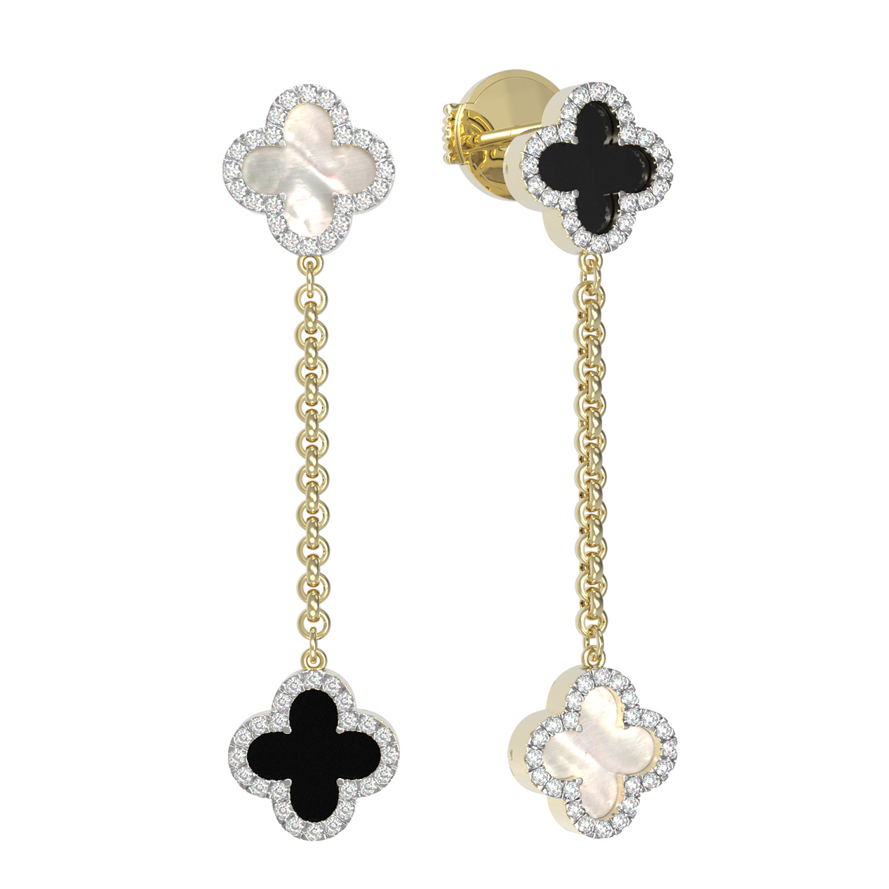 Серьги из лимонного золота c бриллиантами, ониксом и перламутром