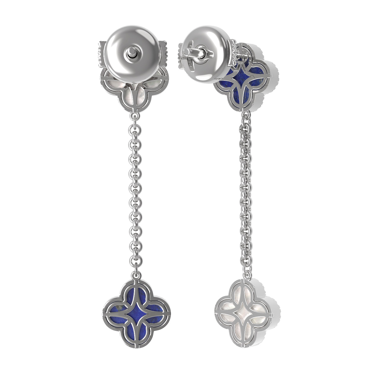 Серьги из белого золота c бриллиантами, лазуритом и перламутром