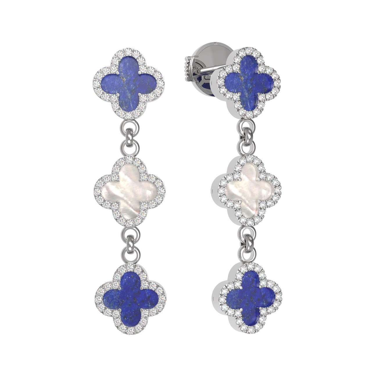 Серьги из белого золота c бриллиантами, лазуритом и перламутром