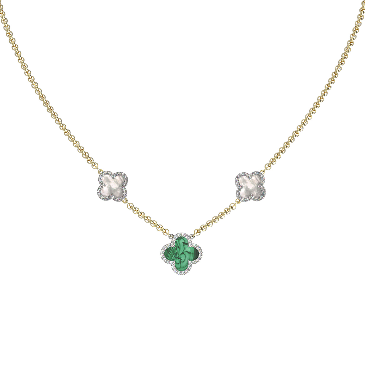 Колье из лимонного золота c бриллиантами, малахитом и перламутром