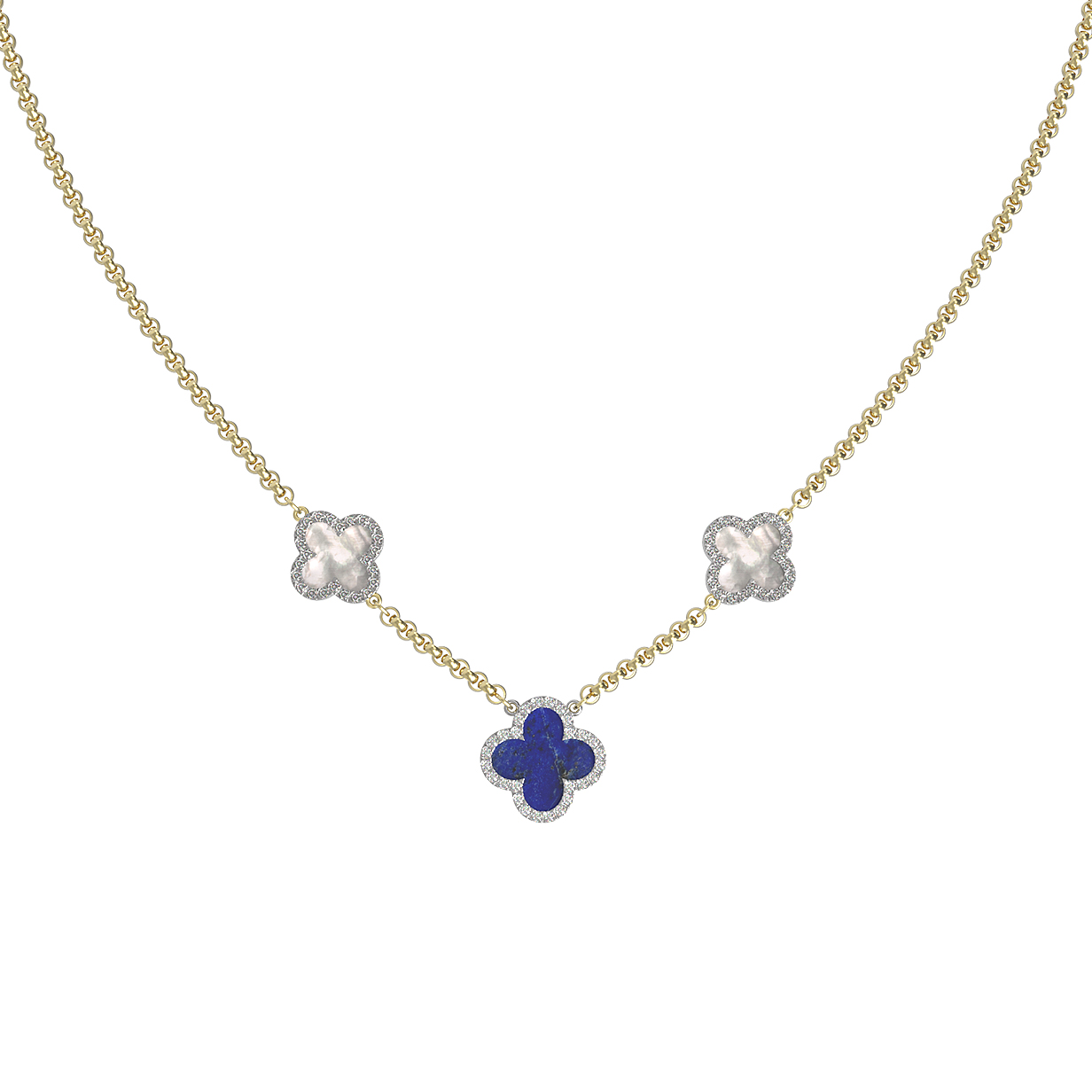 Колье из лимонного золота c бриллиантами, лазуритом и перламутром