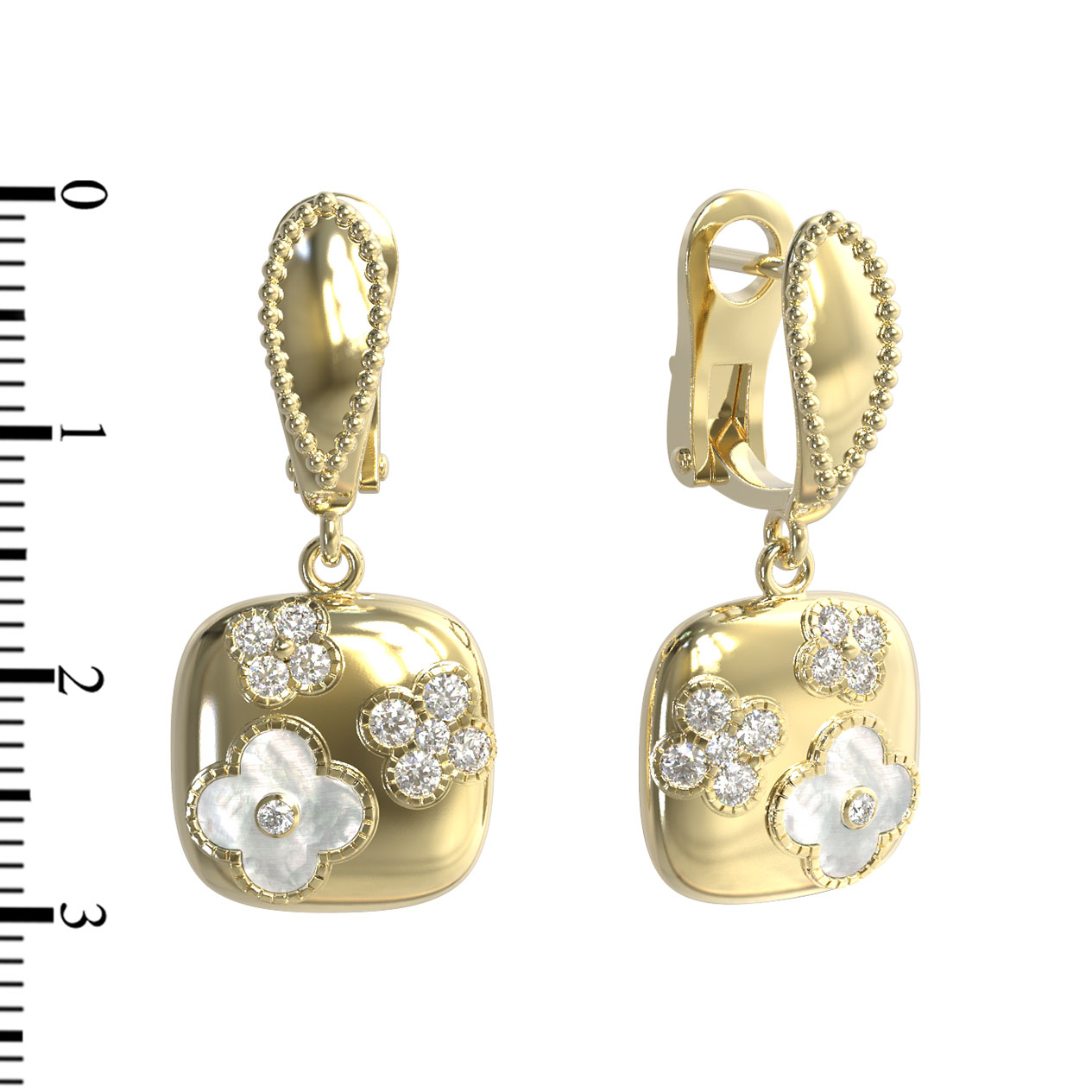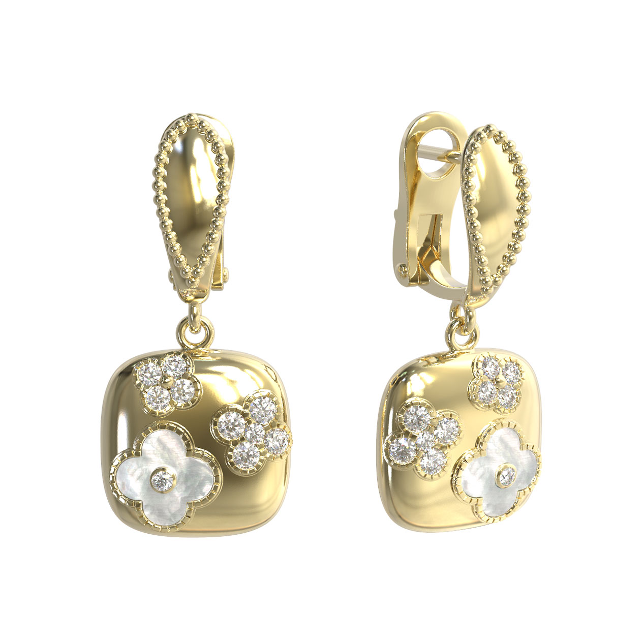 Серьги из лимонного золота c бриллиантами и перламутром