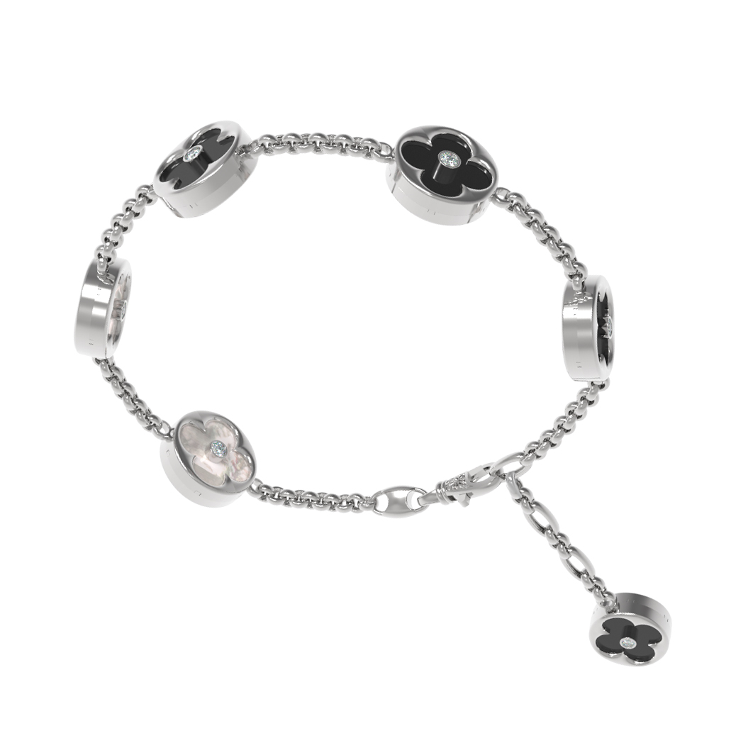 Браслет из белого золота c бриллиантами, ониксом и перламутром
