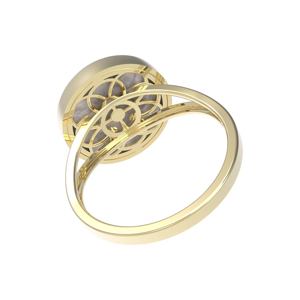 Кольцо из лимонного золота c бриллиантами и перламутром