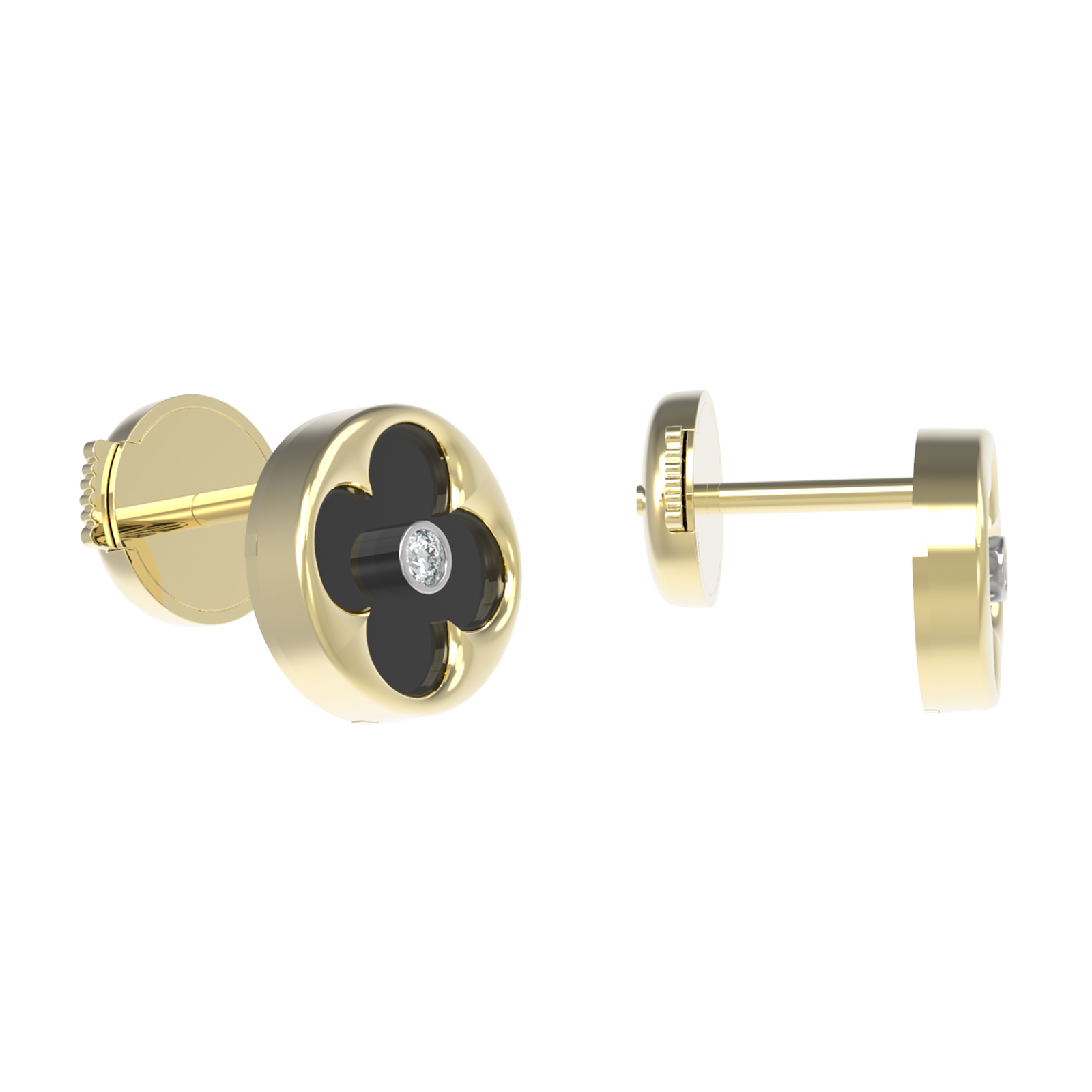 Серьги из лимонного золота c бриллиантами и ониксом
