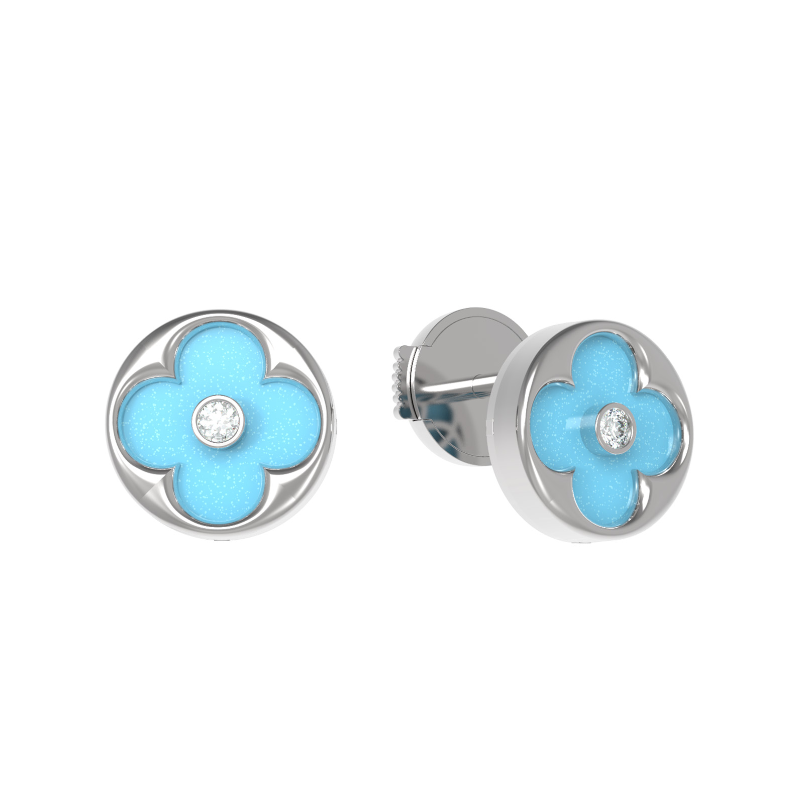Серьги из белого золота c бриллиантами и бирюзой