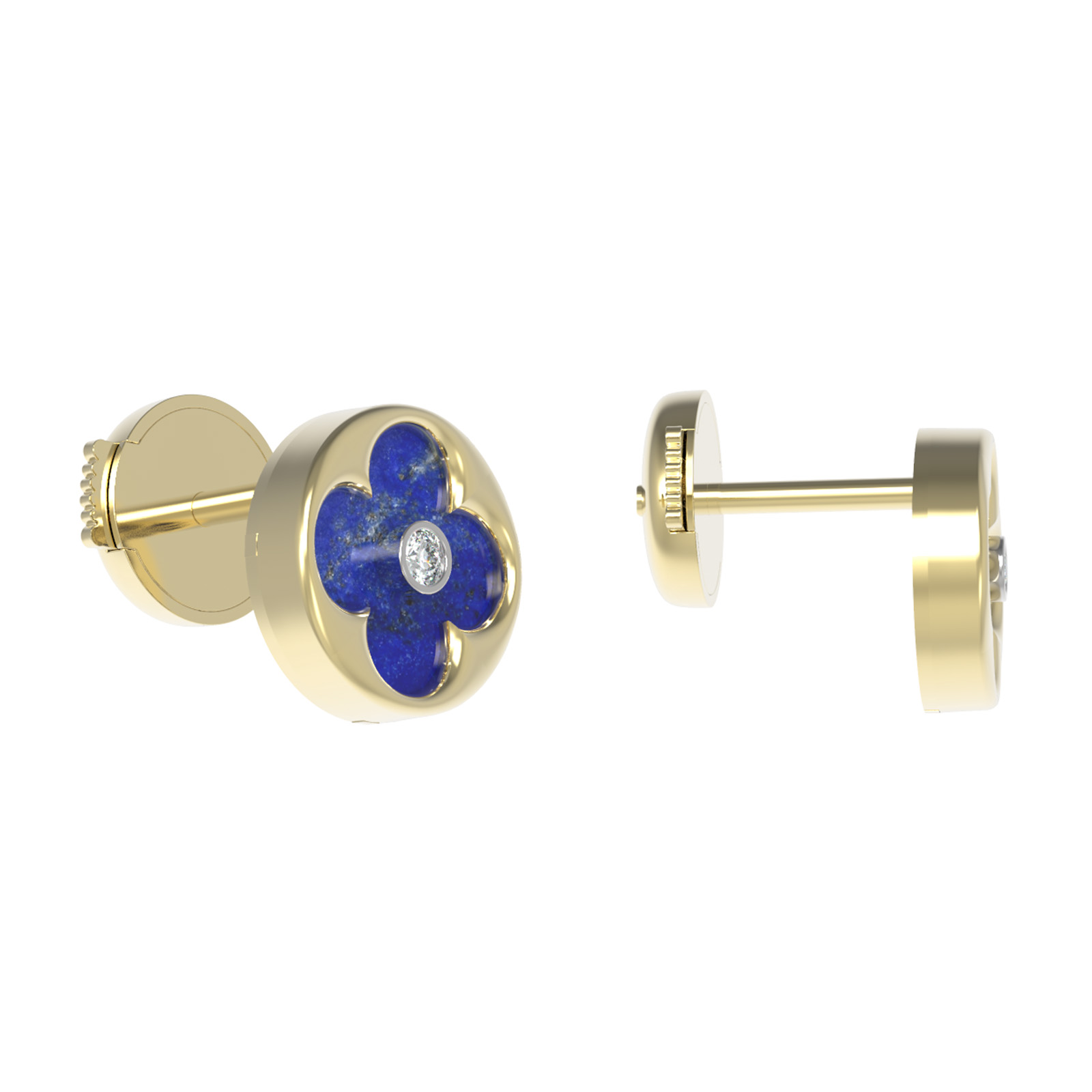 Серьги из лимонного золота c бриллиантами и лазуритом