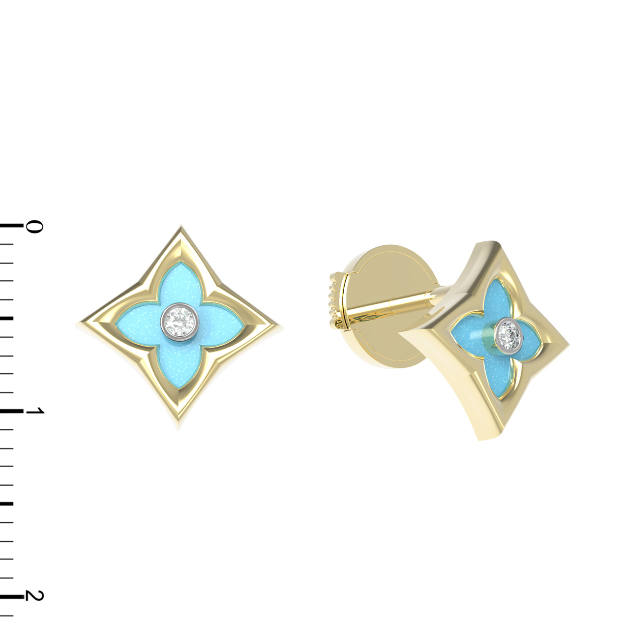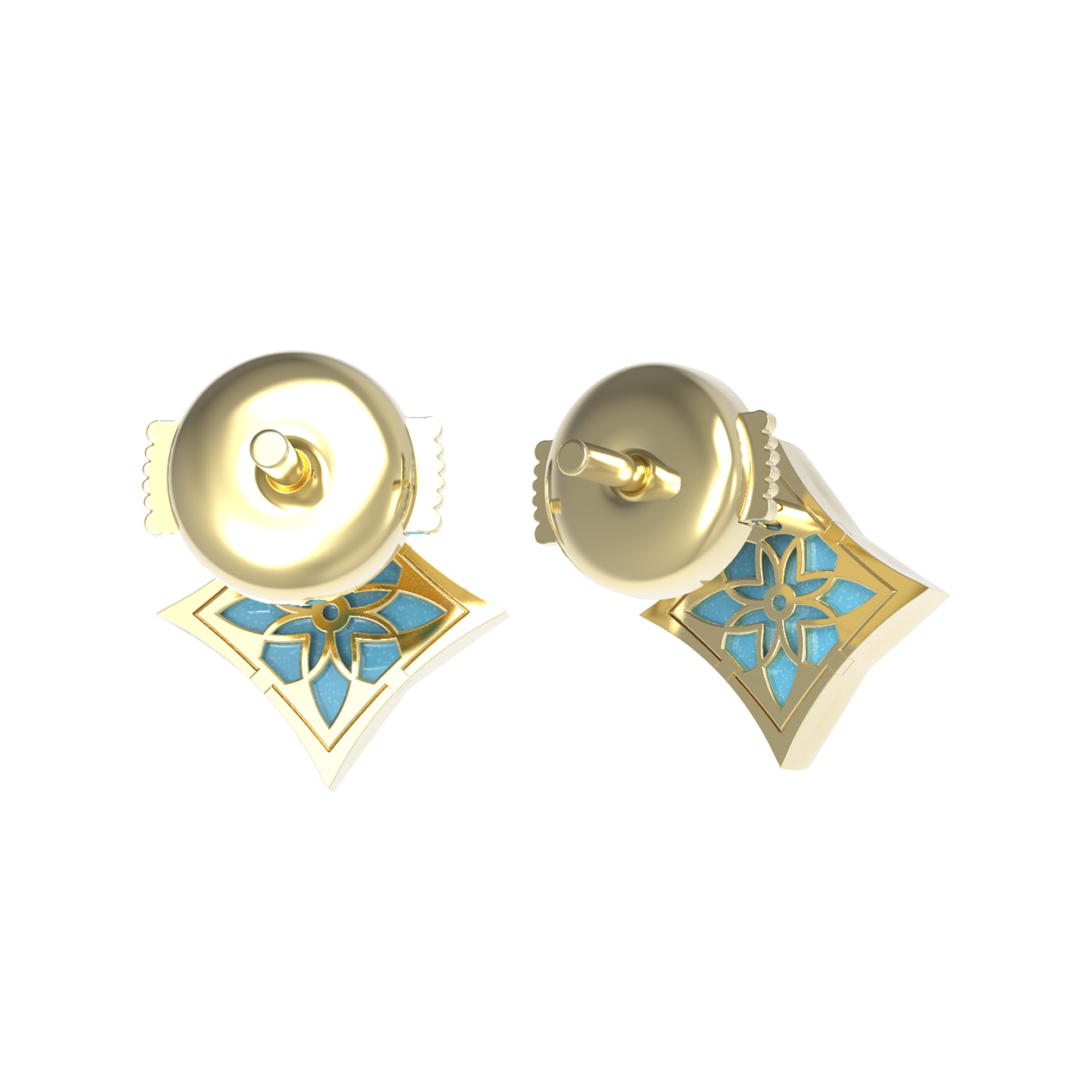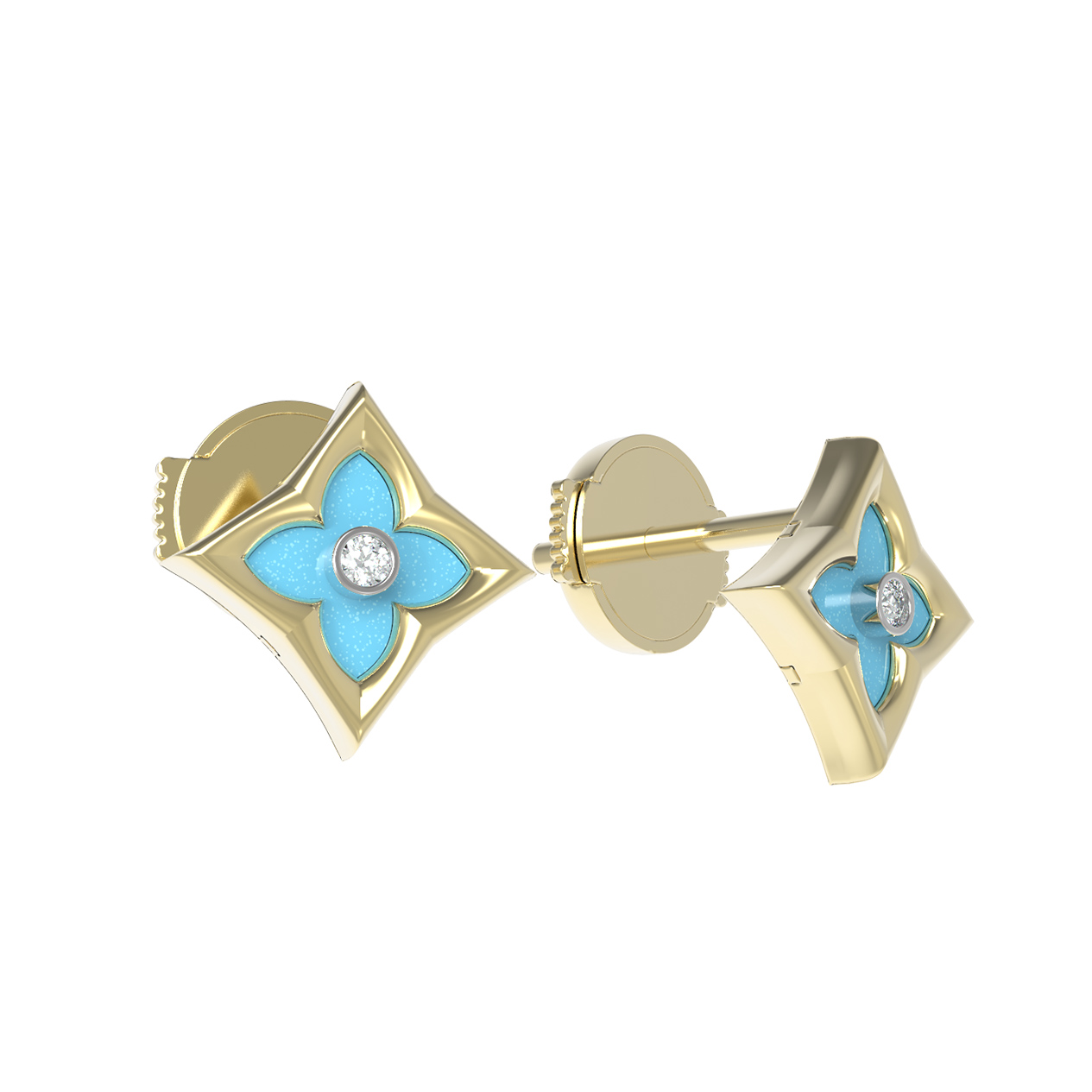 Серьги из лимонного золота c бриллиантами и бирюзой