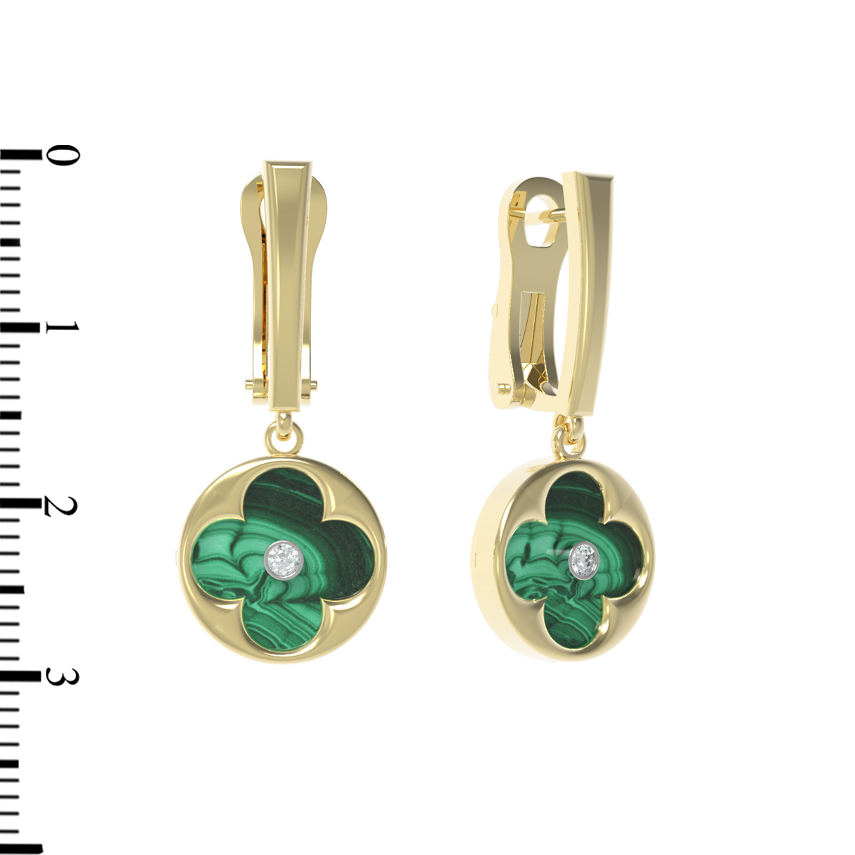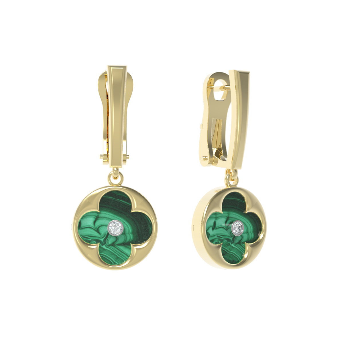 Серьги из лимонного золота c бриллиантами и малахитом