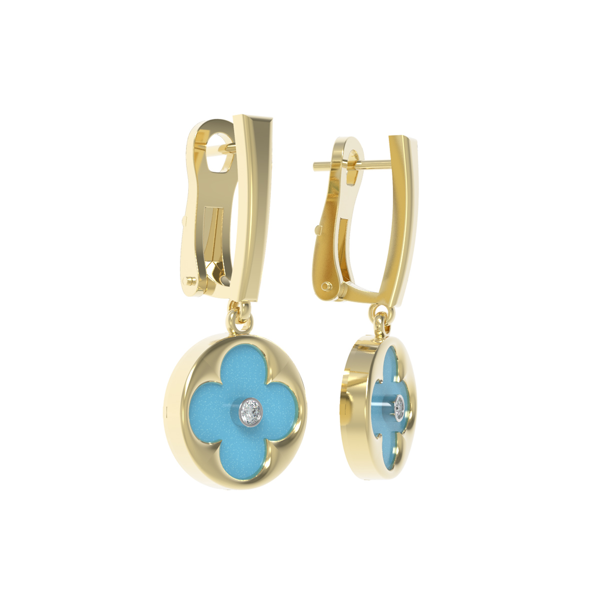 Серьги из лимонного золота c бриллиантами и бирюзой