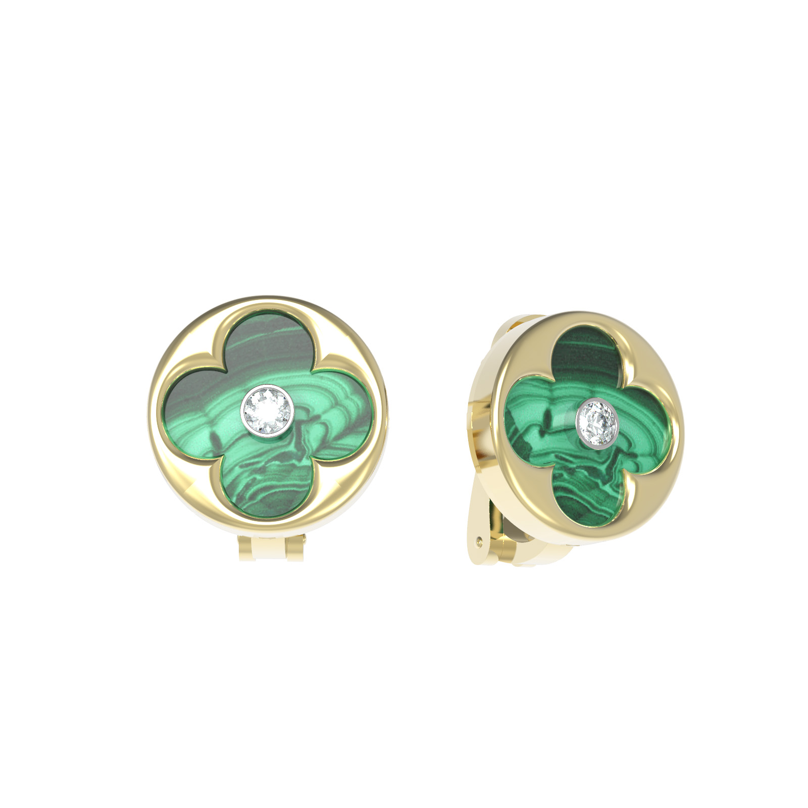 Серьги из лимонного золота c бриллиантами и малахитом