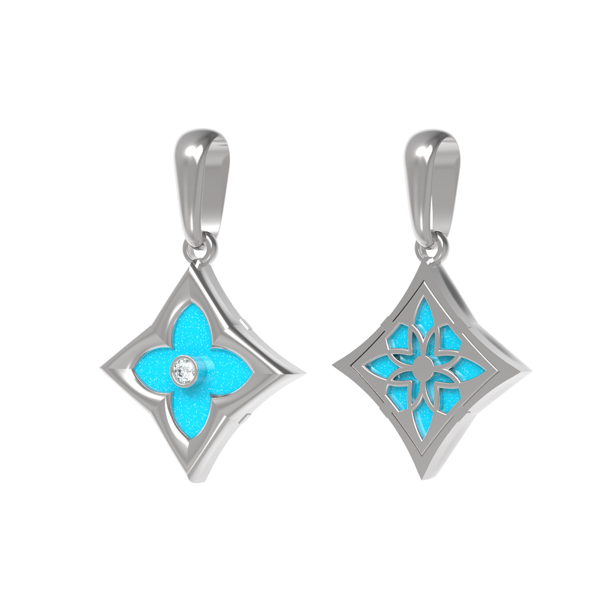 Подвеска из белого золота c бриллиантами и бирюзой