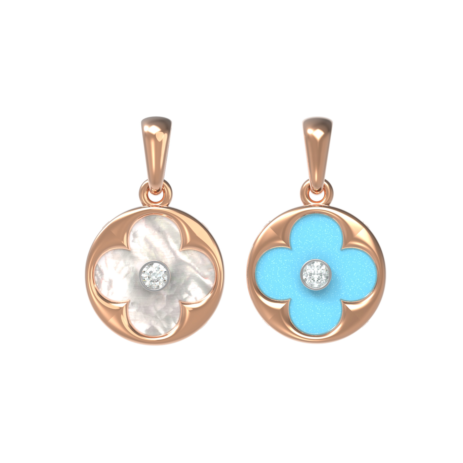 Подвеска из золота c бриллиантами, бирюзой и перламутром
