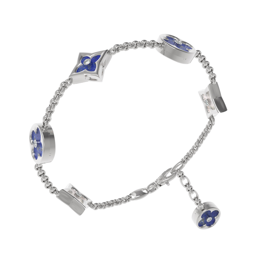 Браслет из белого золота c бриллиантами, лазуритом и перламутром