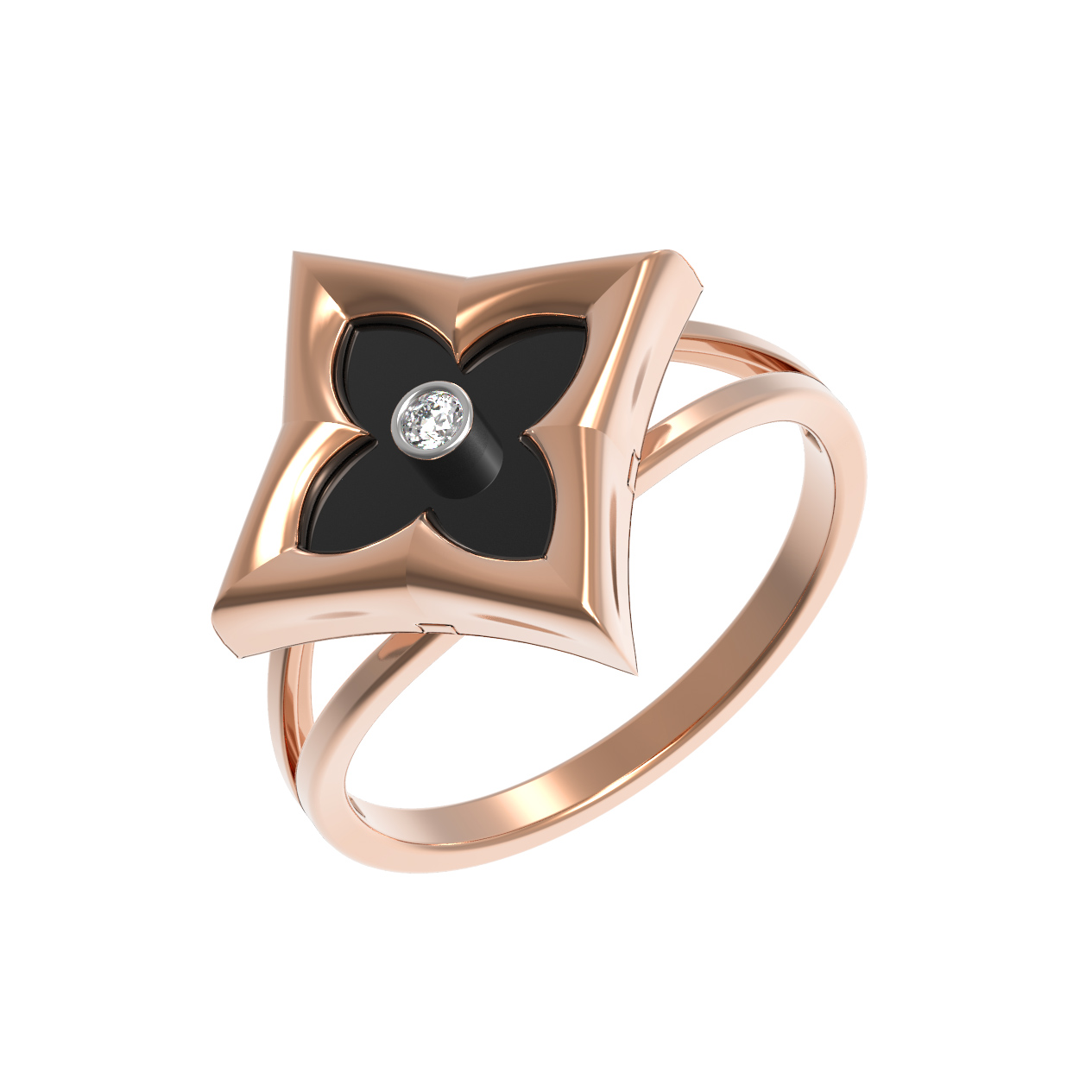 Кольцо из золота c бриллиантами и ониксом