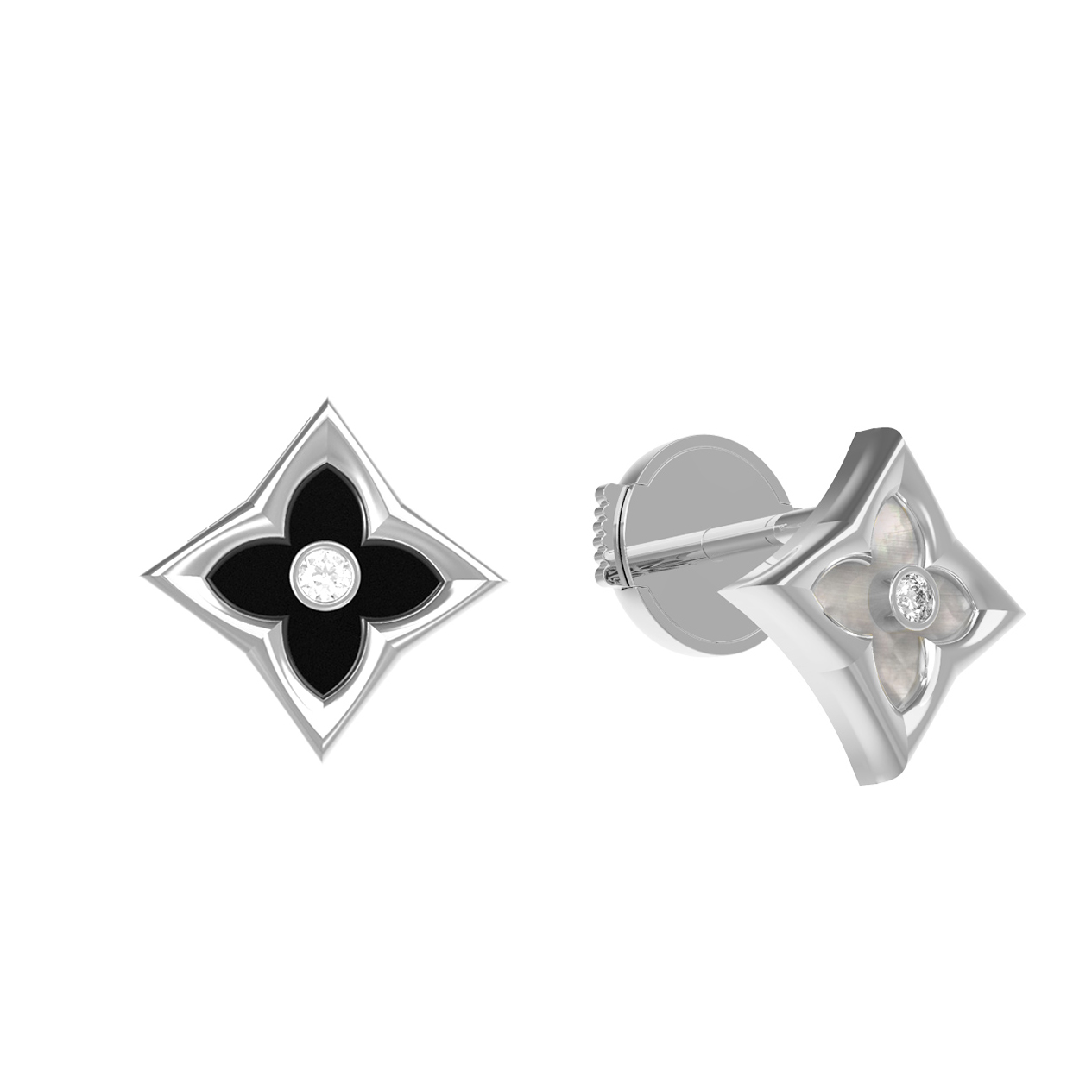 Серьги из белого золота c бриллиантами, ониксом и перламутром
