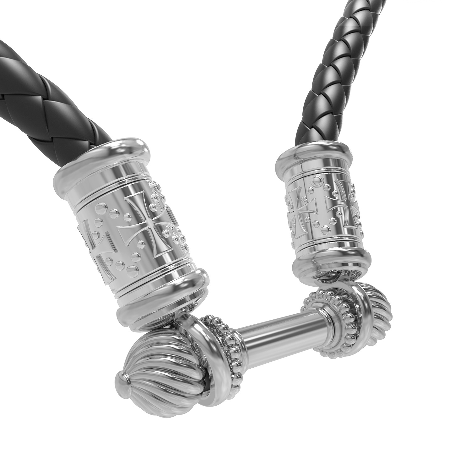 Гайтан из белого золота c кожаным шнурком
