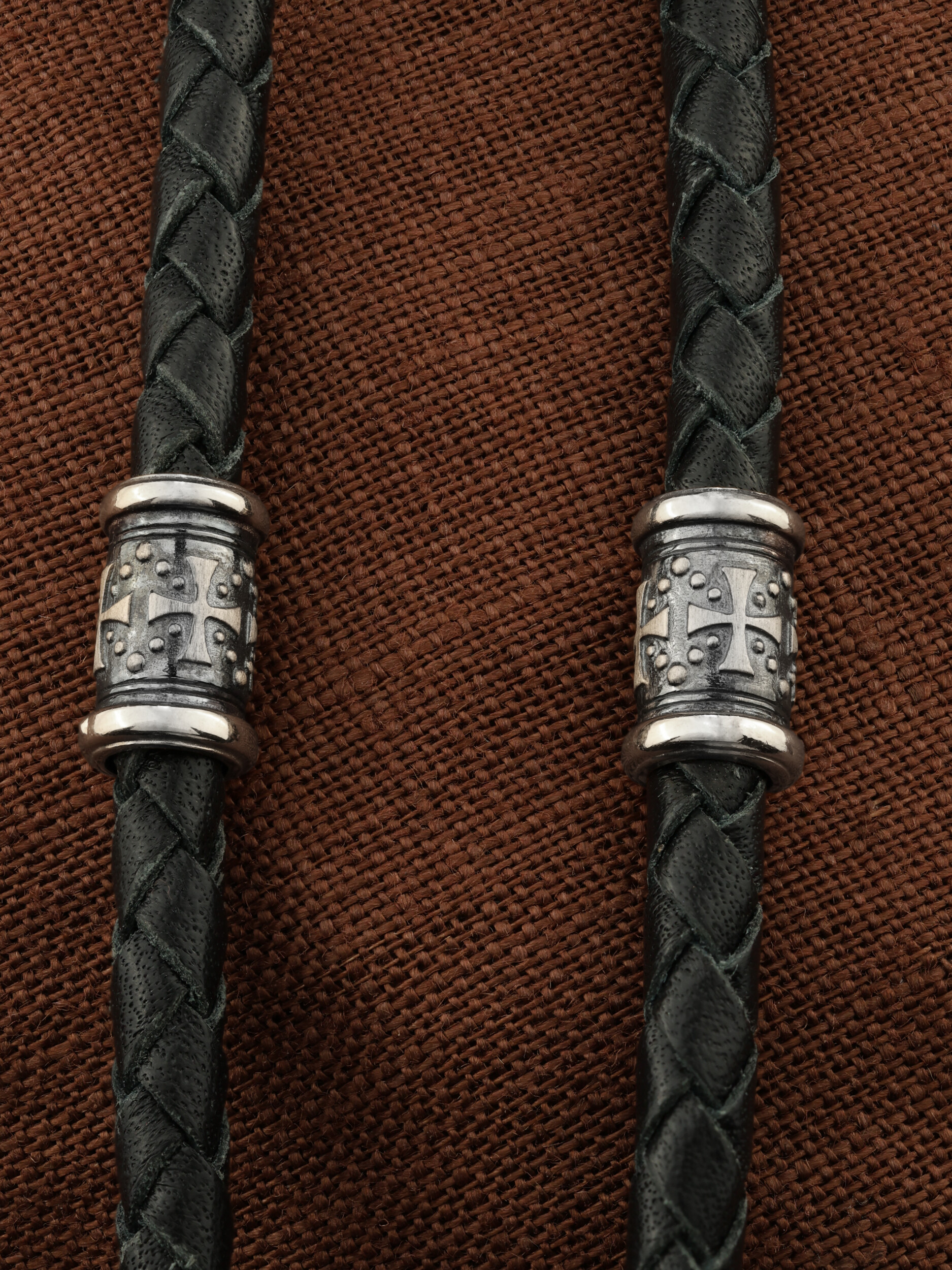 Гайтан из белого золота c кожаным шнурком
