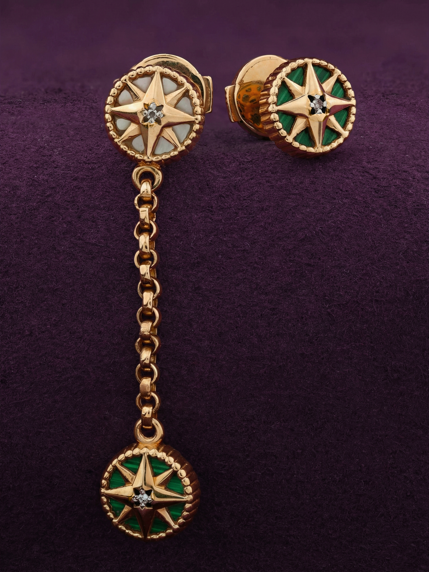 Серьги из золота c бриллиантами, малахитом и перламутром