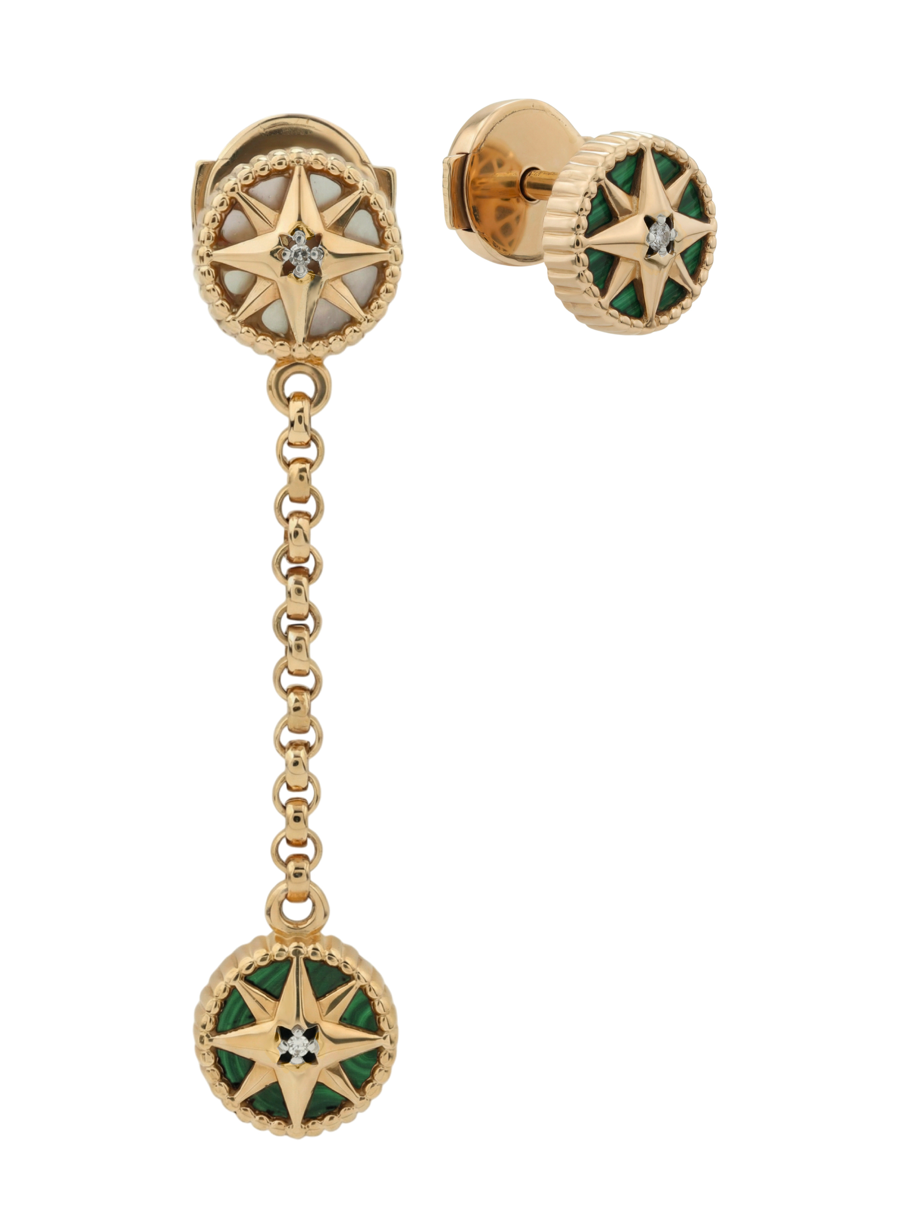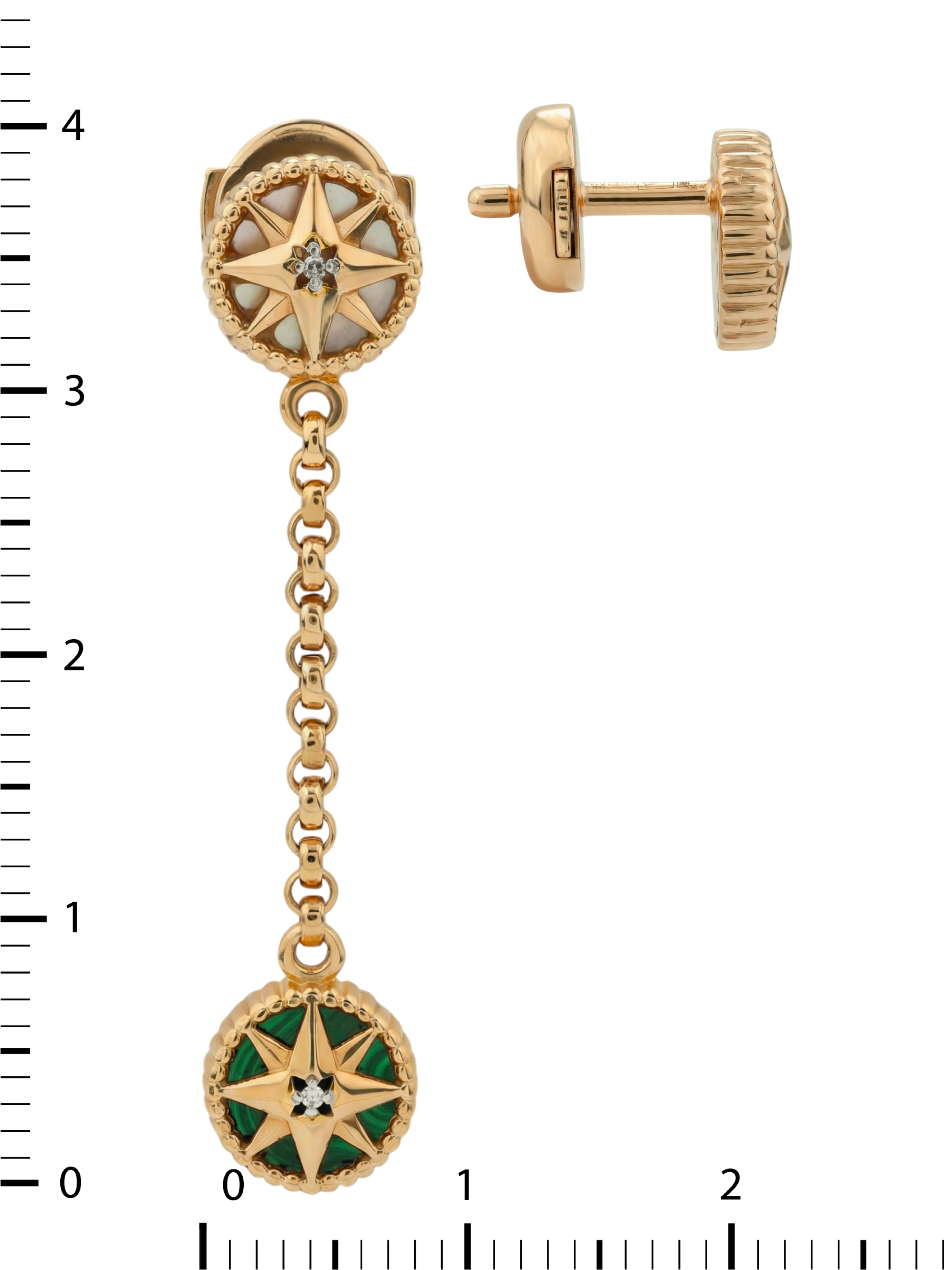 Серьги из золота c бриллиантами, малахитом и перламутром