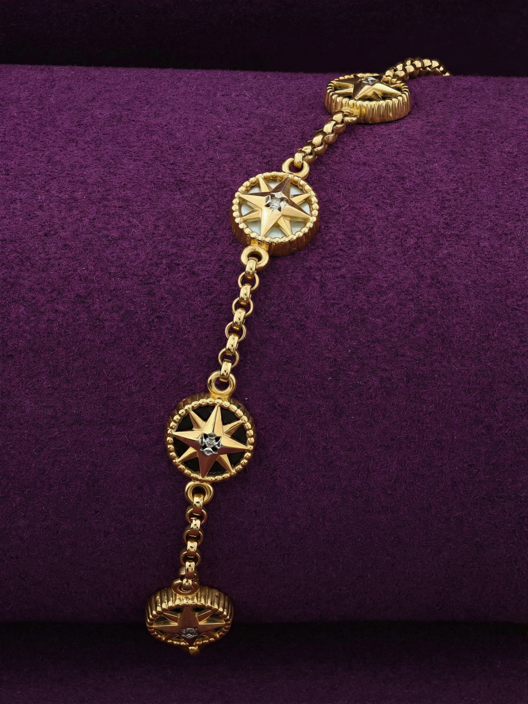 Браслет из лимонного золота c бриллиантами, ониксом и перламутром