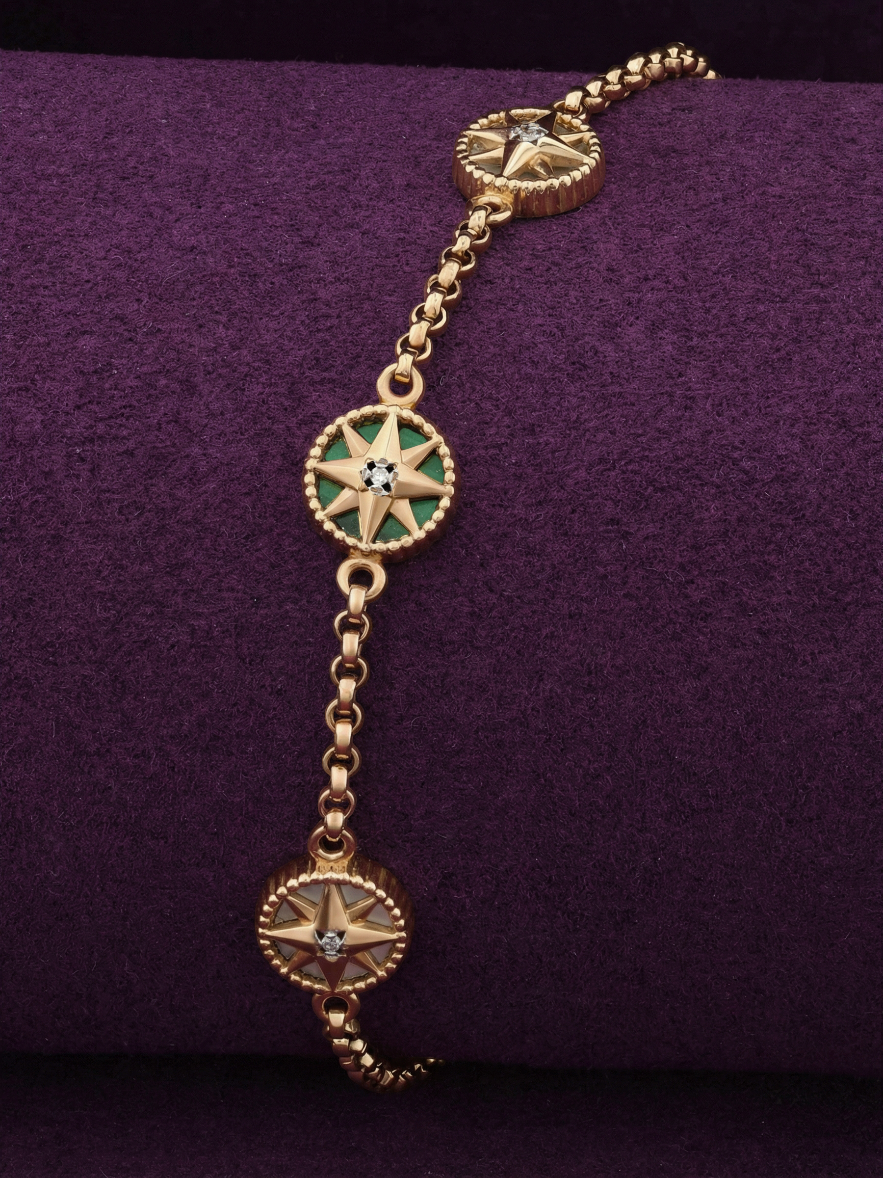 Браслет из золота c бриллиантами, малахитом и перламутром