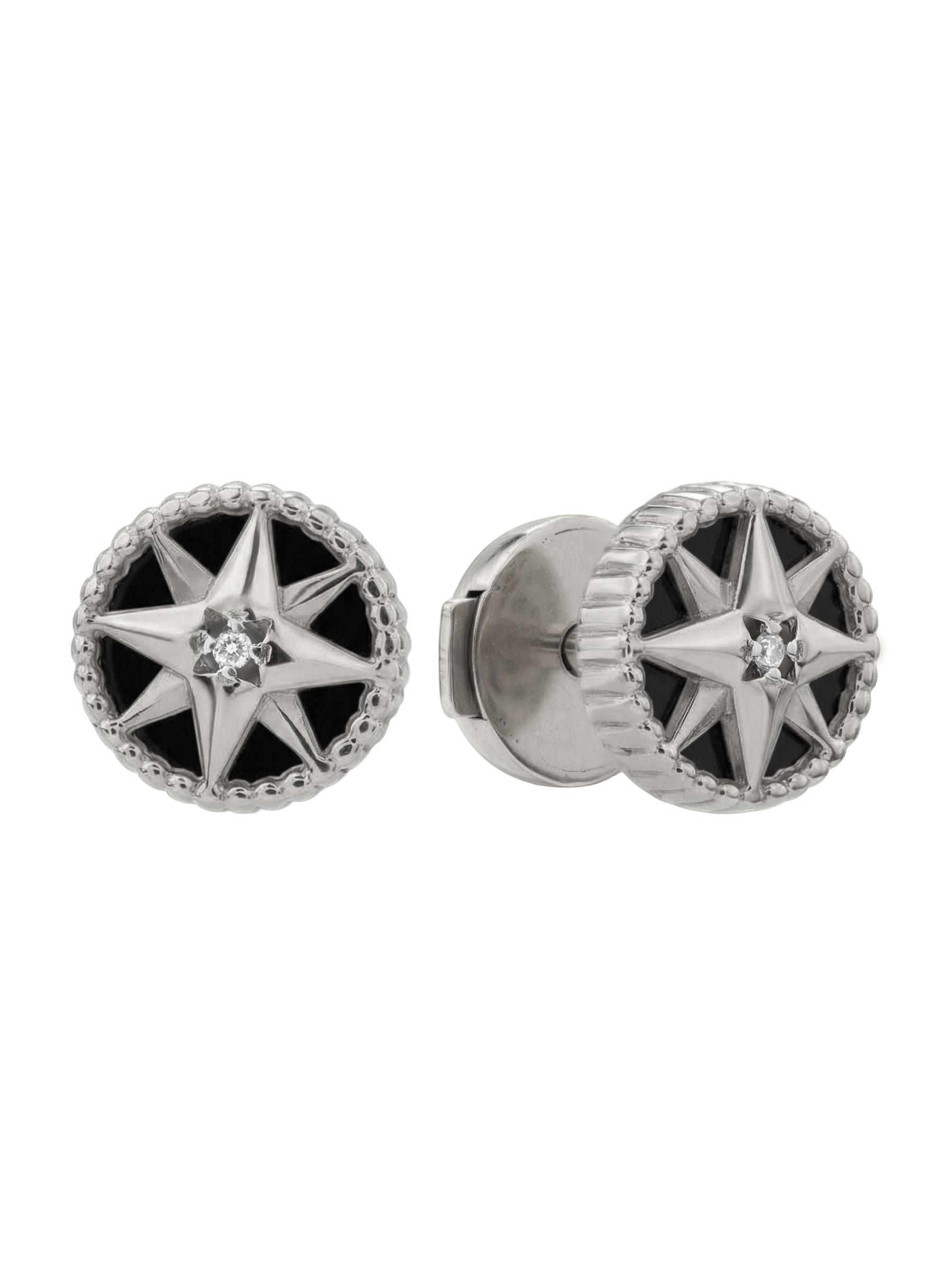 Серьги из белого золота c бриллиантами и ониксом