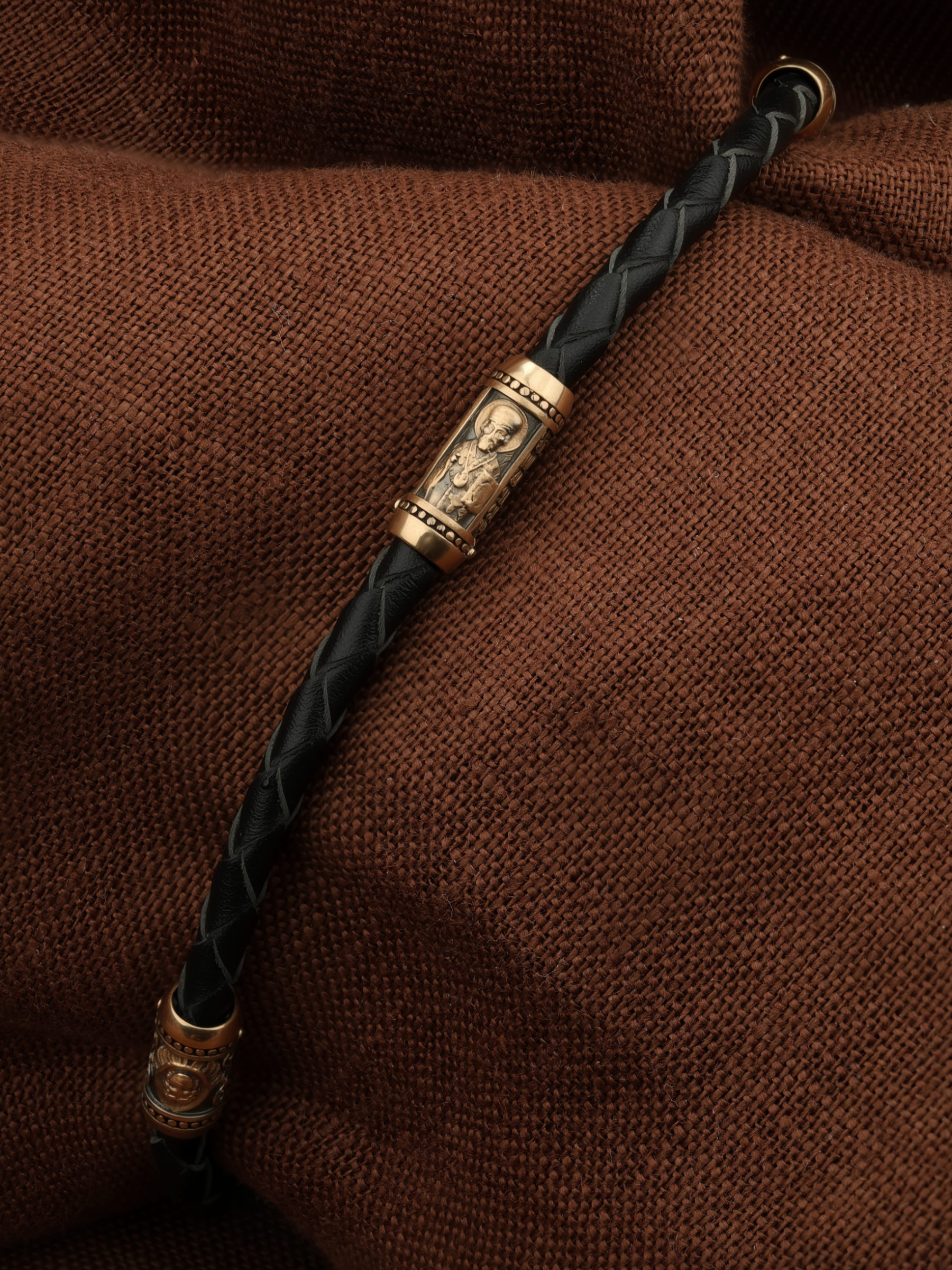 Браслет из золота c кожаным шнурком