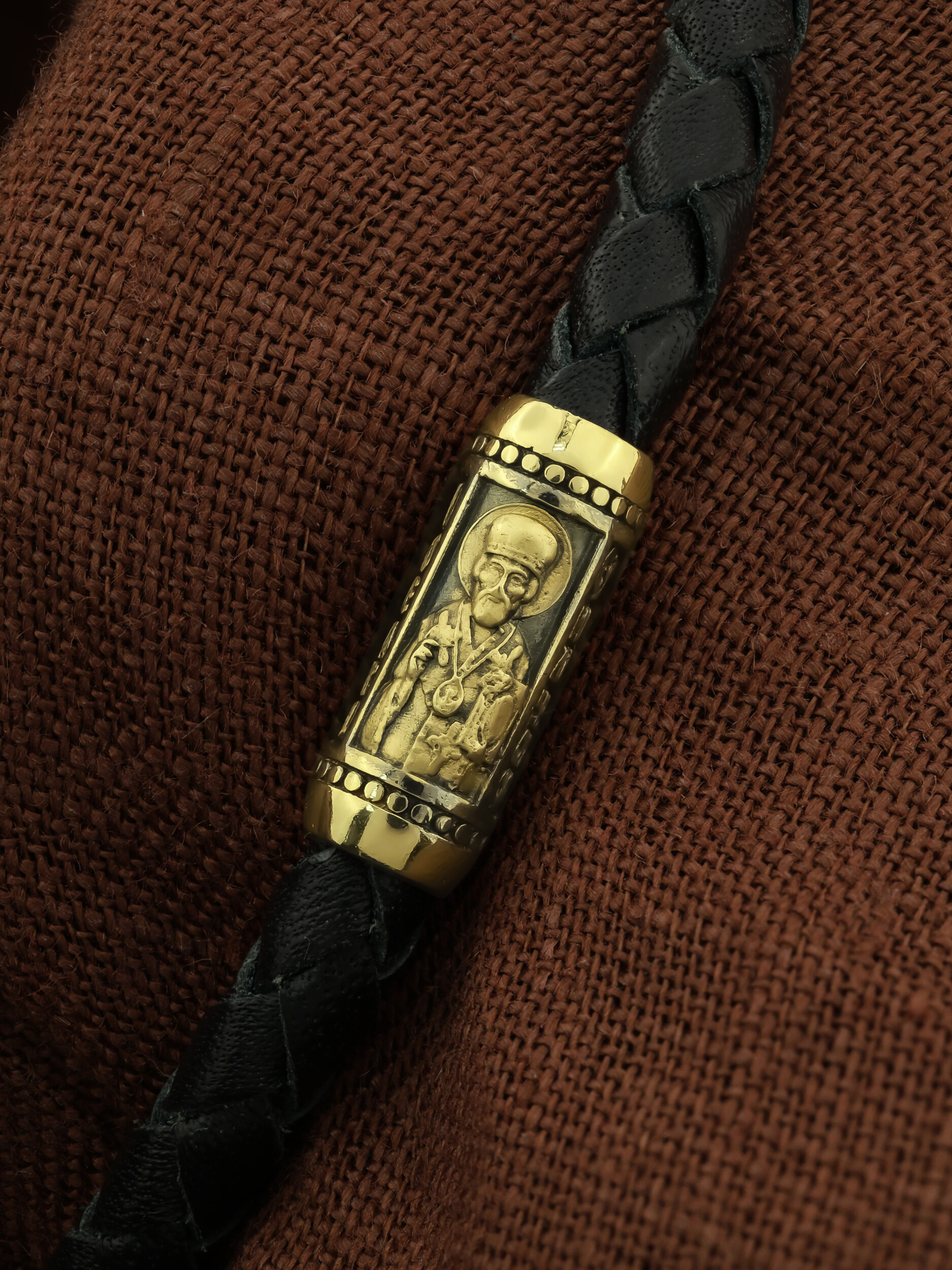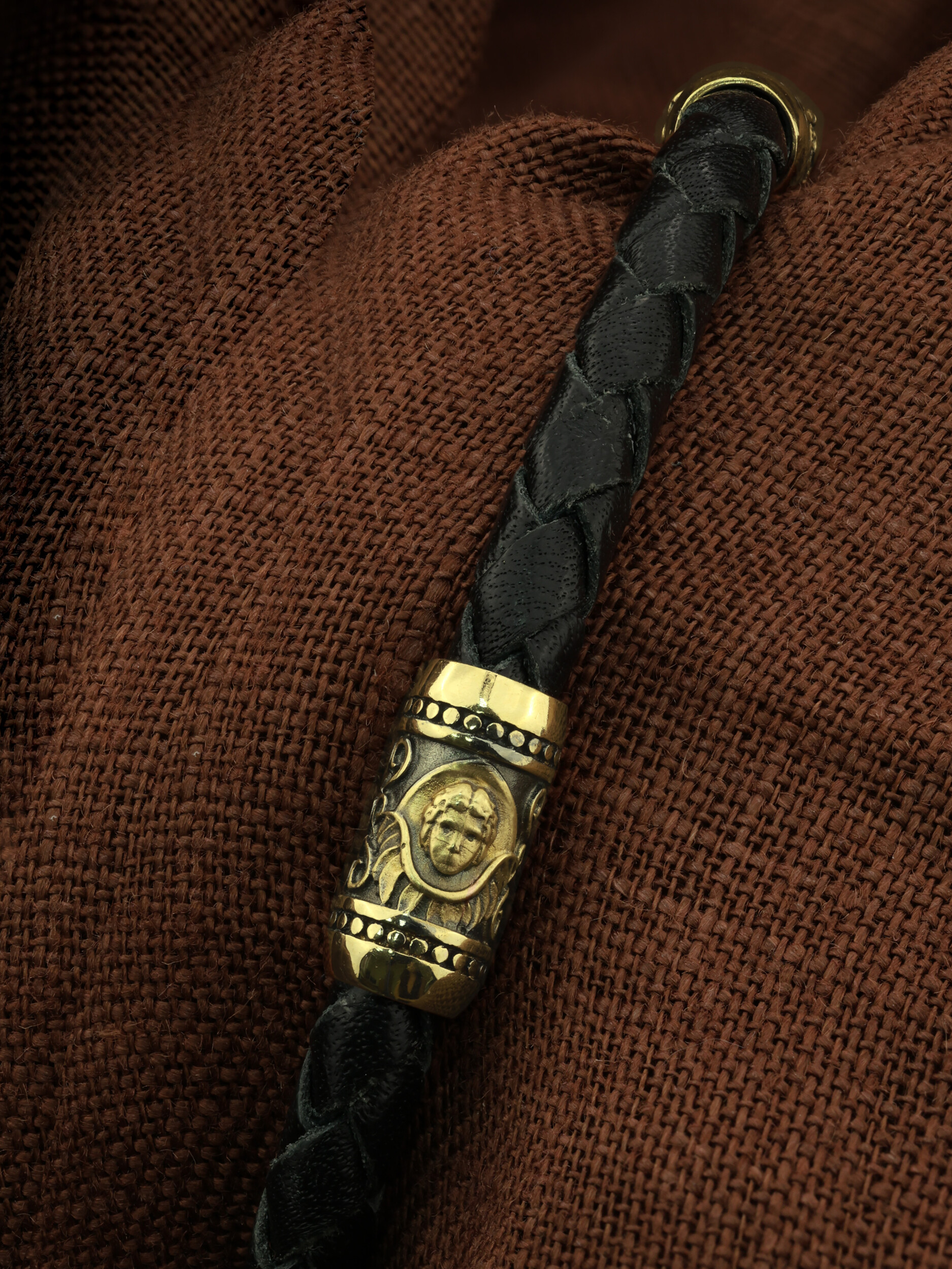 Браслет из лимонного золота c кожаным шнурком