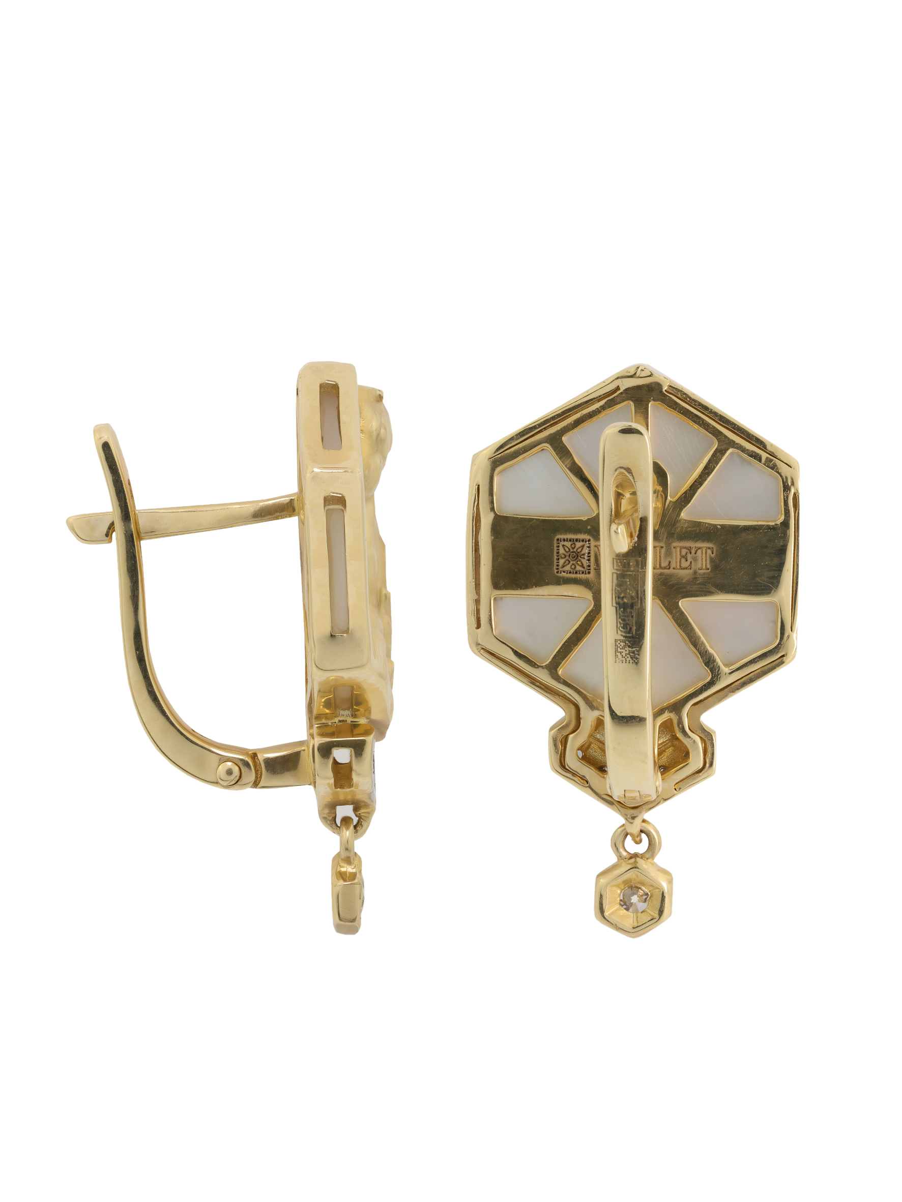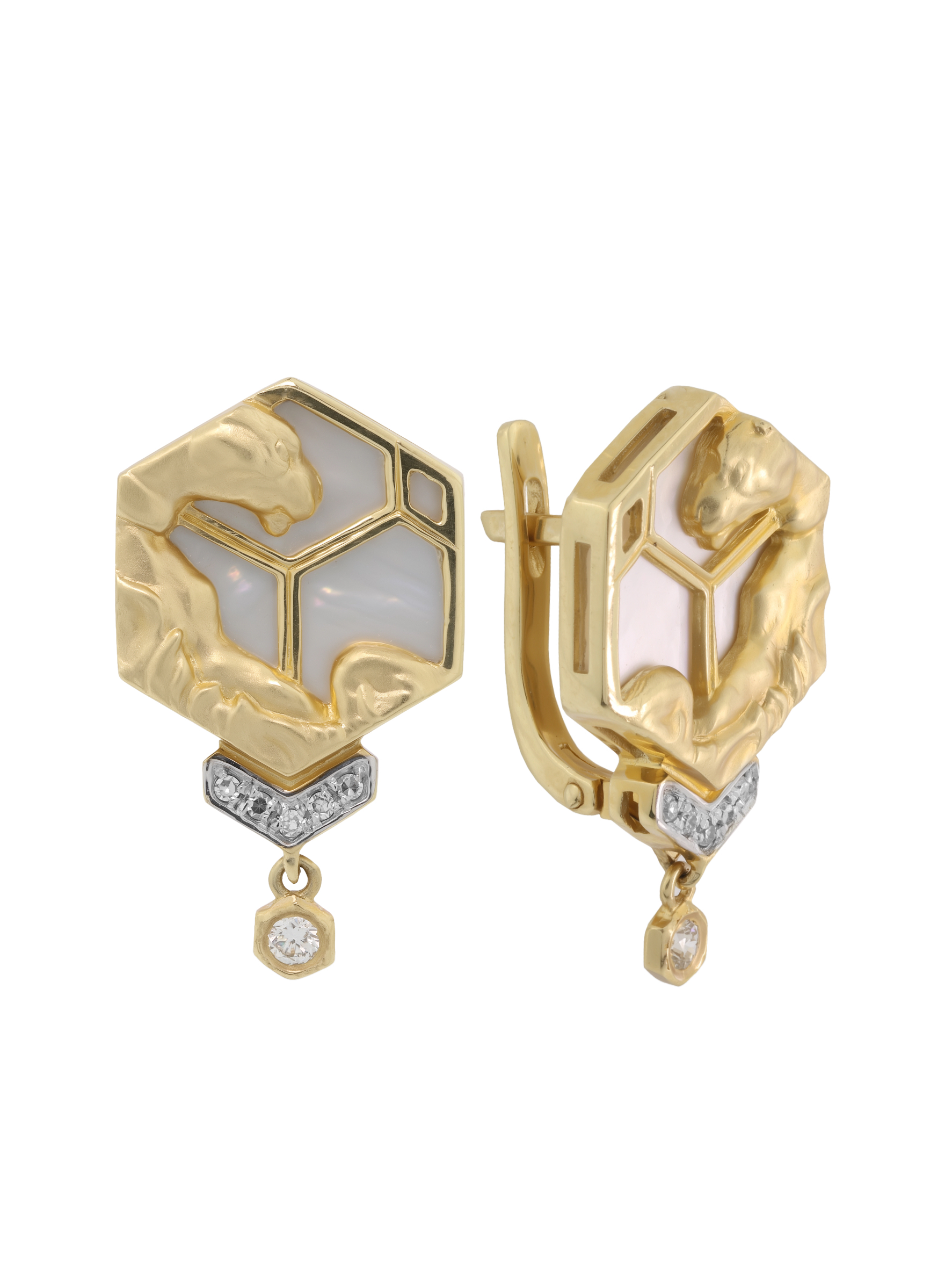 Серьги из лимонного золота c бриллиантами и перламутром
