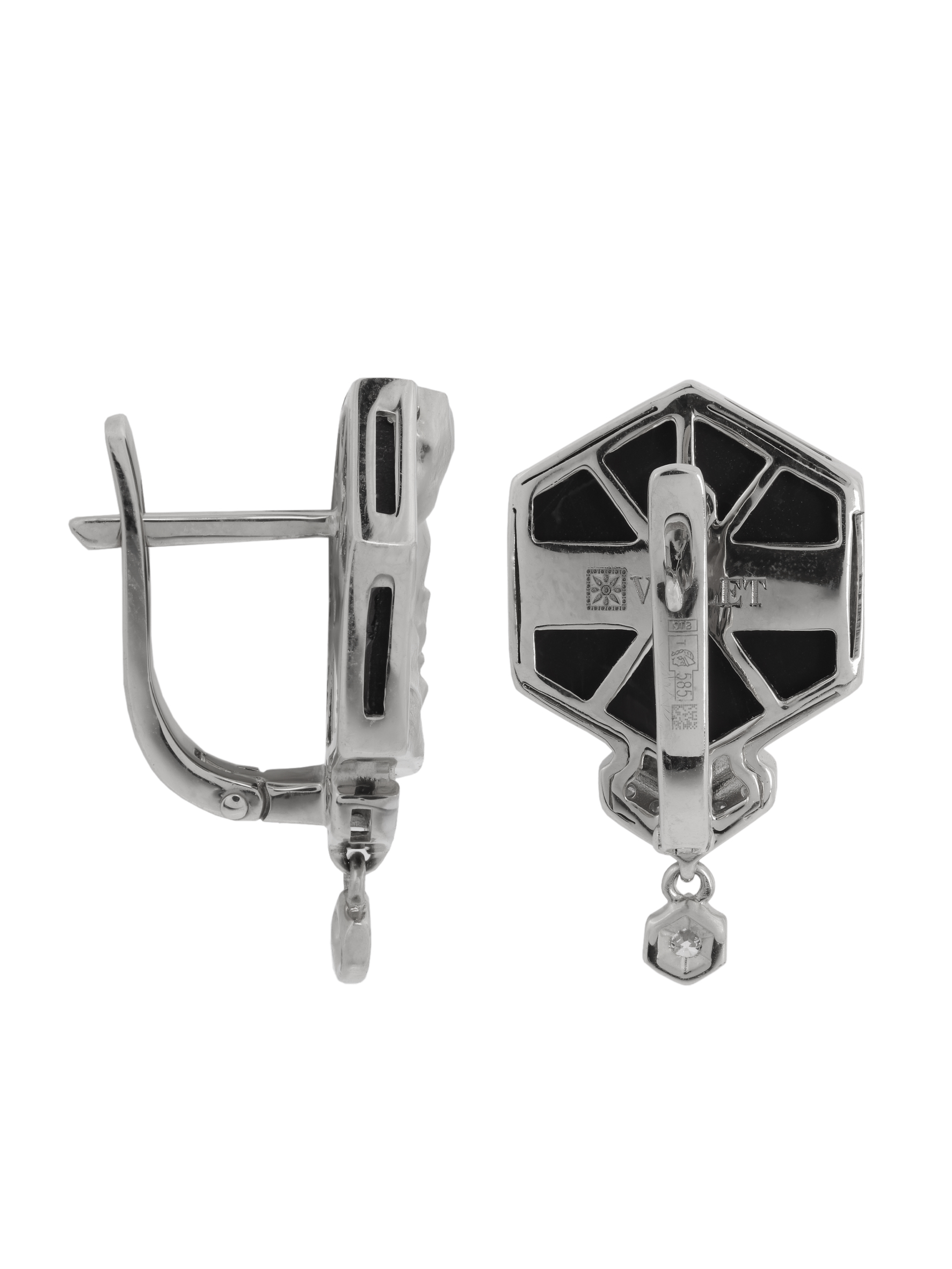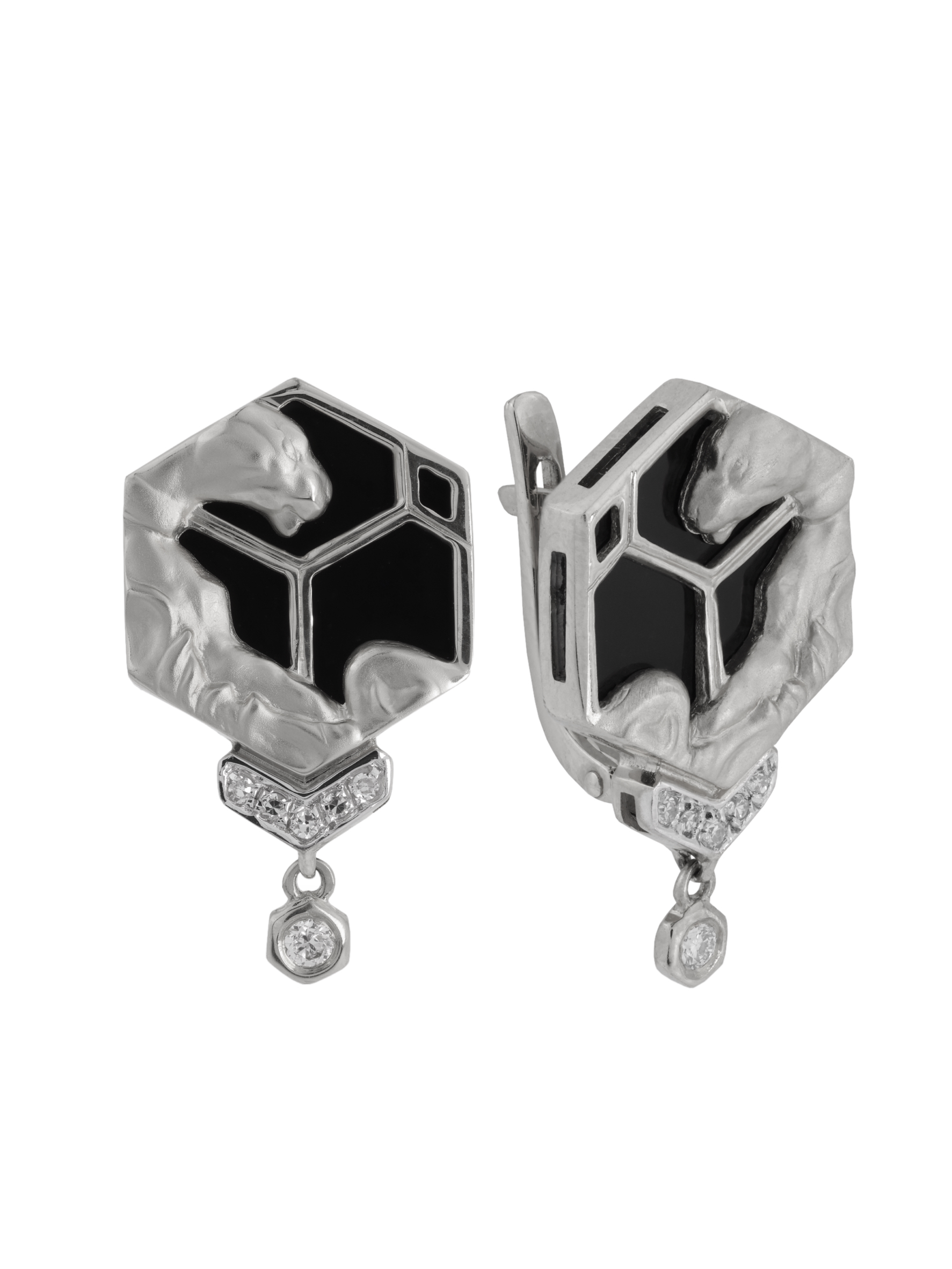 Серьги из белого золота c бриллиантами и ониксом